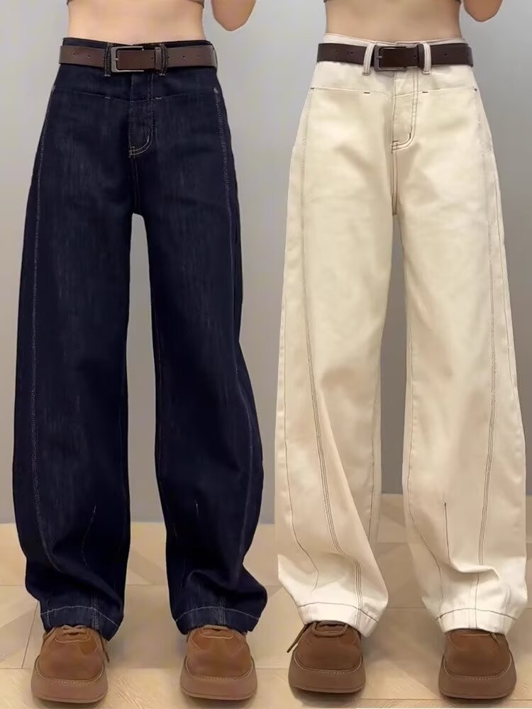 女性のための白いシミタジーンズ春、秋、夏の2025新しいルーズワイドレッグパンツスリミングナローバージョンバナナパンツ
