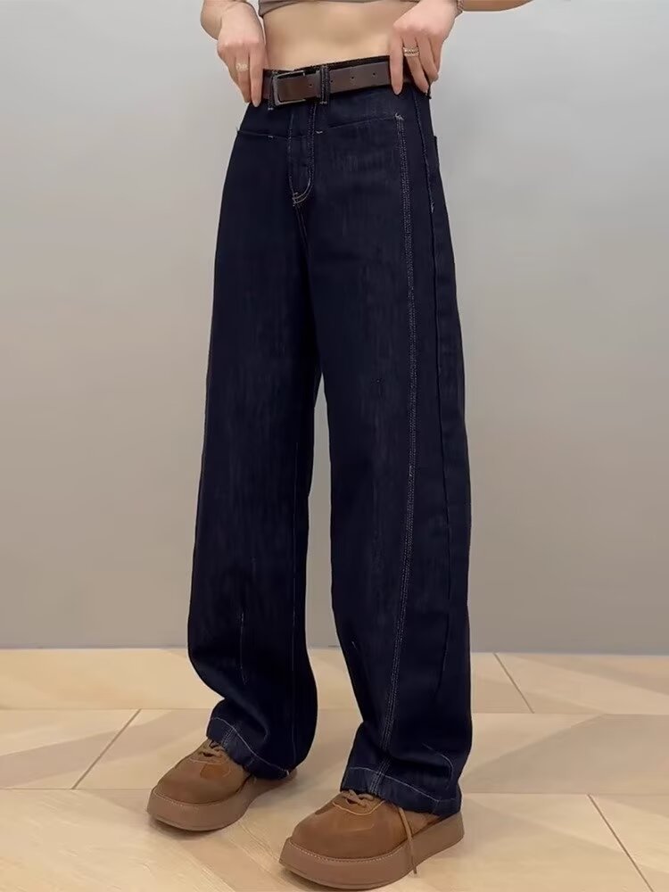 大きいサイズの丹寧色のバナナのジーパンの女性の腰の広い足のズボンの復古の太いmmのゆったりしているまっすぐな筒は地面を引きずって刀のズボンを曲げます。