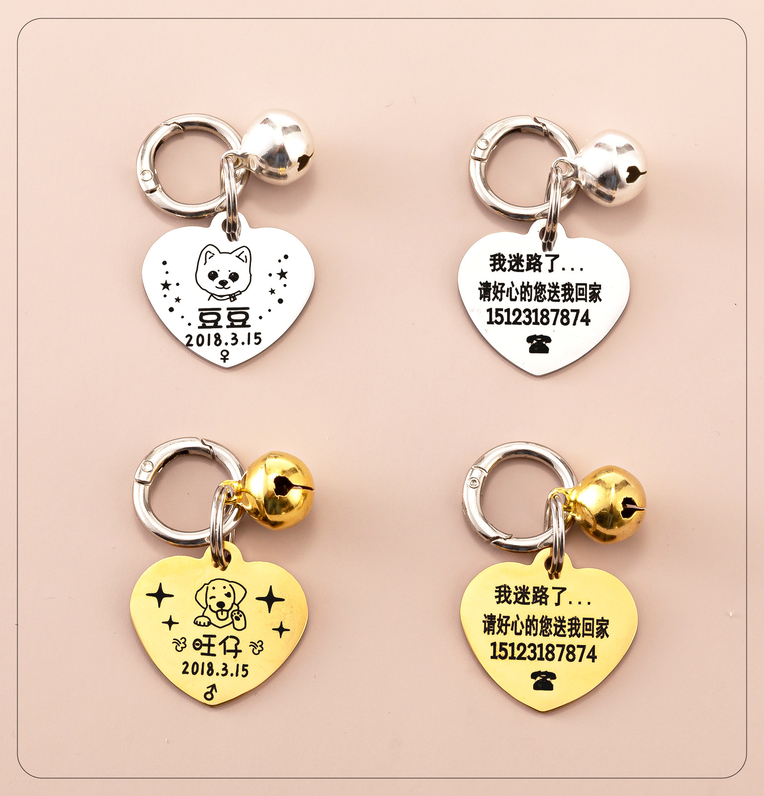 ペット用ネームタグ、迷子防止タグ、犬用タグ、猫用タグ、刻印入りIDタグ、小型犬用ペットアクセサリー、一件代発送、新品