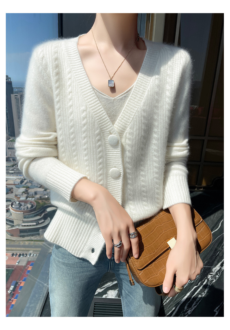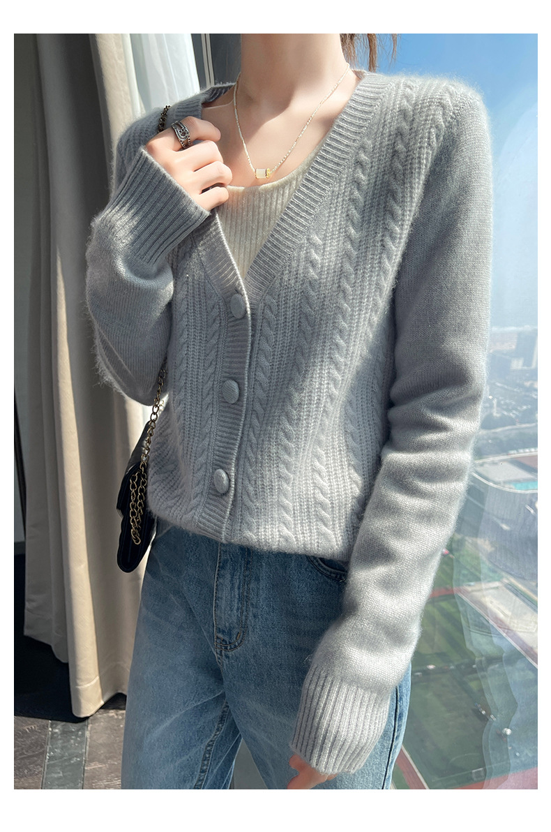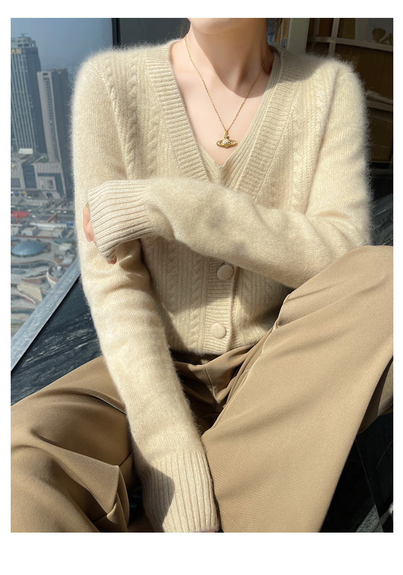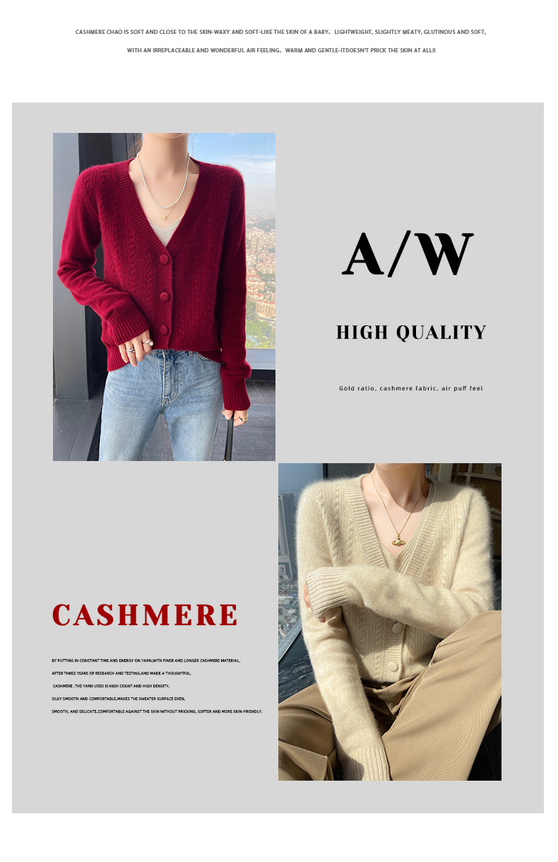 秋冬のvネックのカシミヤの女性のニットのカーディガンの上着は肌のファッションに合わせてゆったりしていて、やせているセーターのコートを見せます。