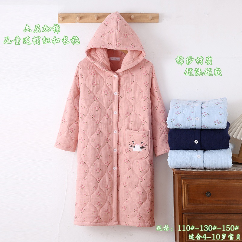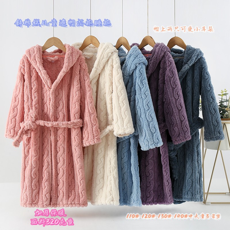 四层加厚儿童连帽浴袍睡袍家居长袍