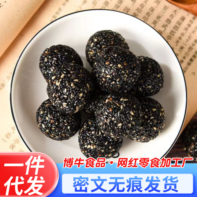 代発黒胡麻丸九蒸九晒胡麻球は単独で500gを入れて純粋な胡麻の間食黒胡麻丸を卸売りします。