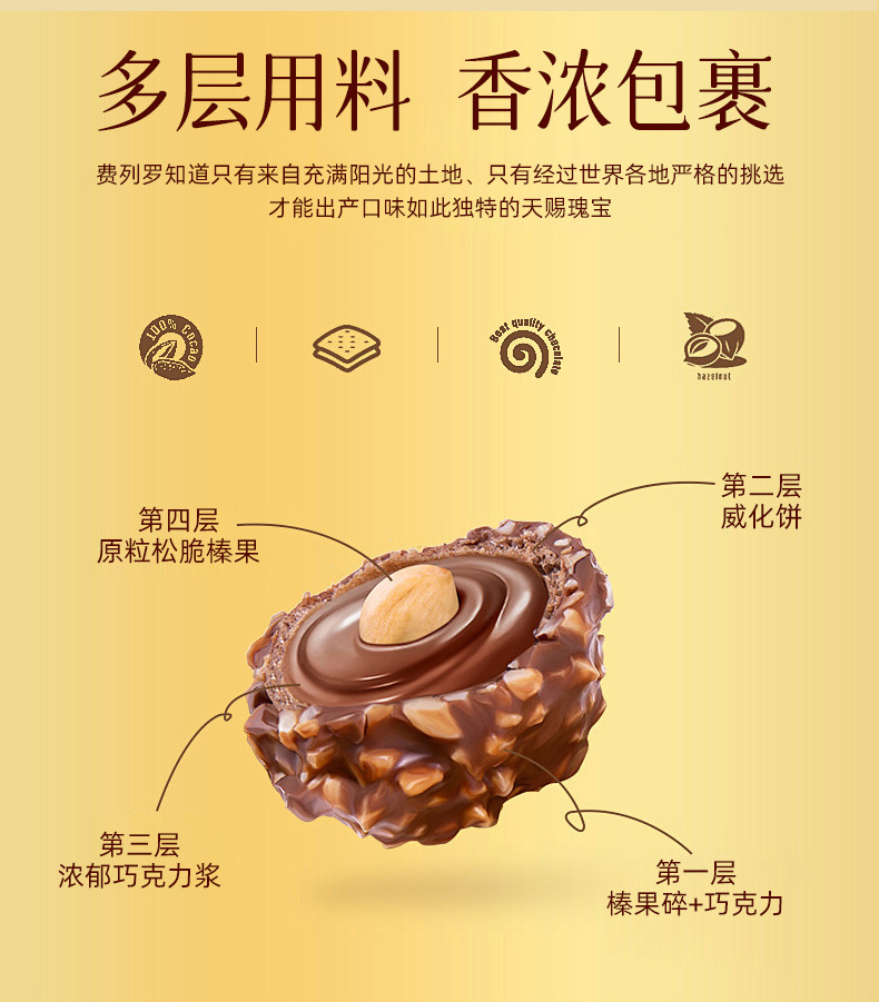 意大利费列/罗金莎榛仁T3巧克力喜糖节日礼物进口夹心巧克力
