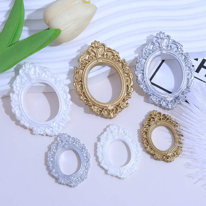 ヨーロッパのレトロなミニ樹脂の小さいフォトフレームdiyの小さいアクセサリのレリーフの花の置物の位置付けの枠のピアスの装飾の部品