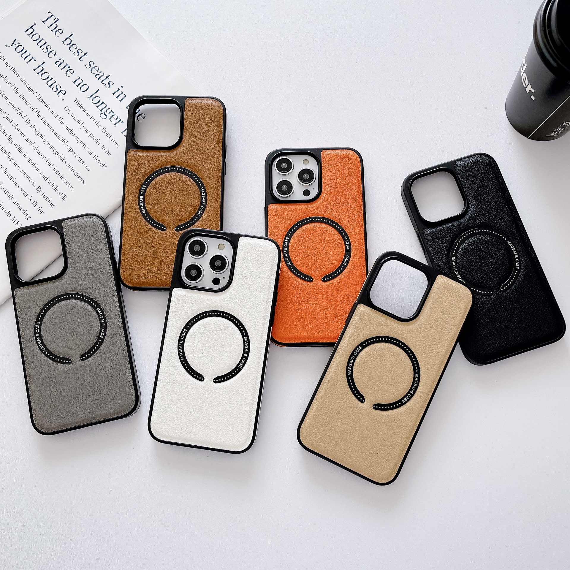 Apple 15 Pro Max用ライチ柄レザー磁気吸着スマホケース iPhone 11/12 ビジネス向け 指紋防止