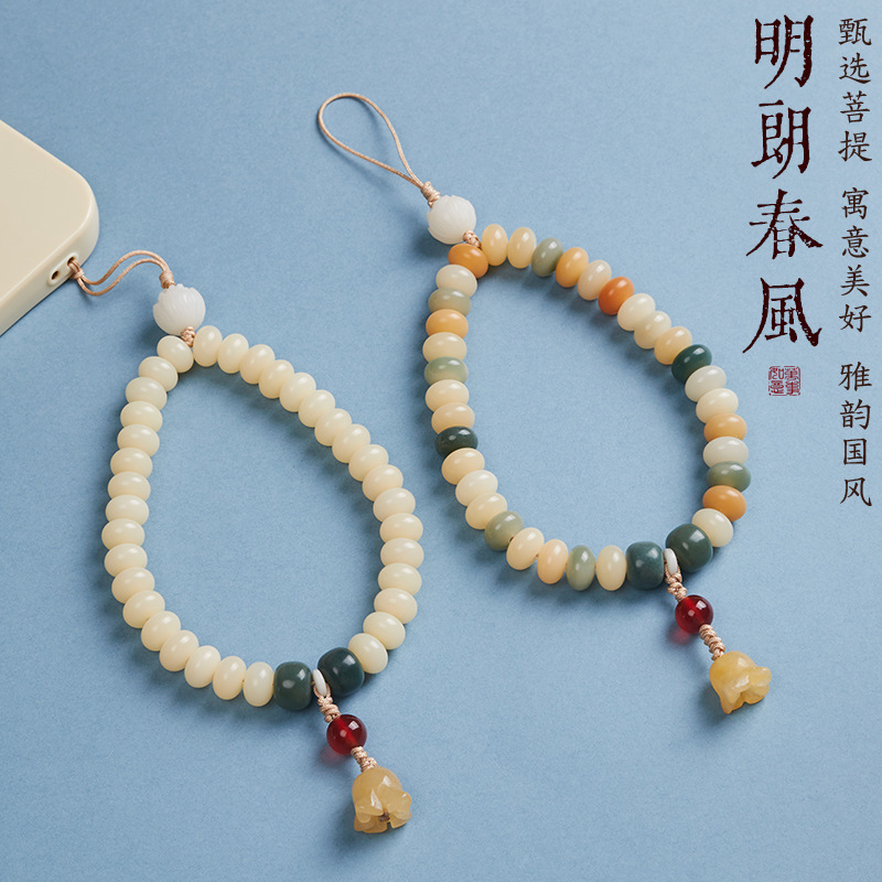 天然白玉は菩提蓮の鍵をまねて携帯電話のペンダントを掛けます。