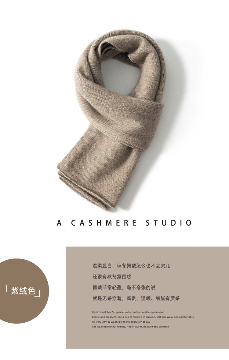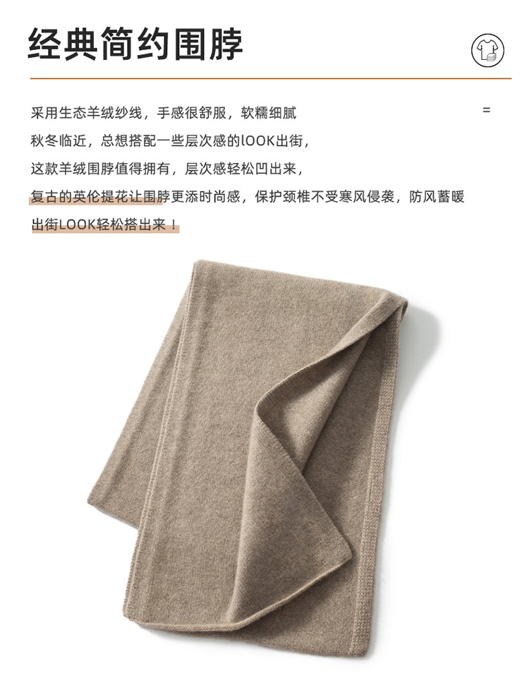 秋冬款拉绒100%山羊绒针织围巾时尚通勤百搭软糯舒适保暖轻奢通用