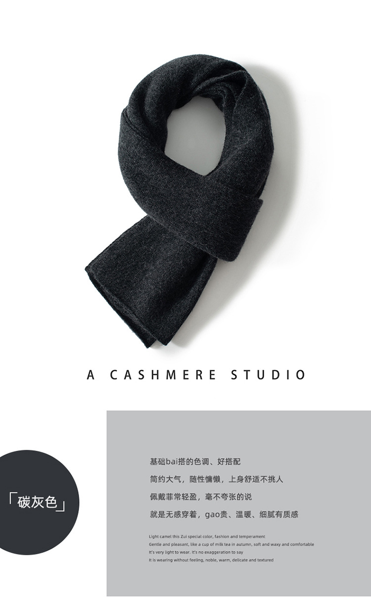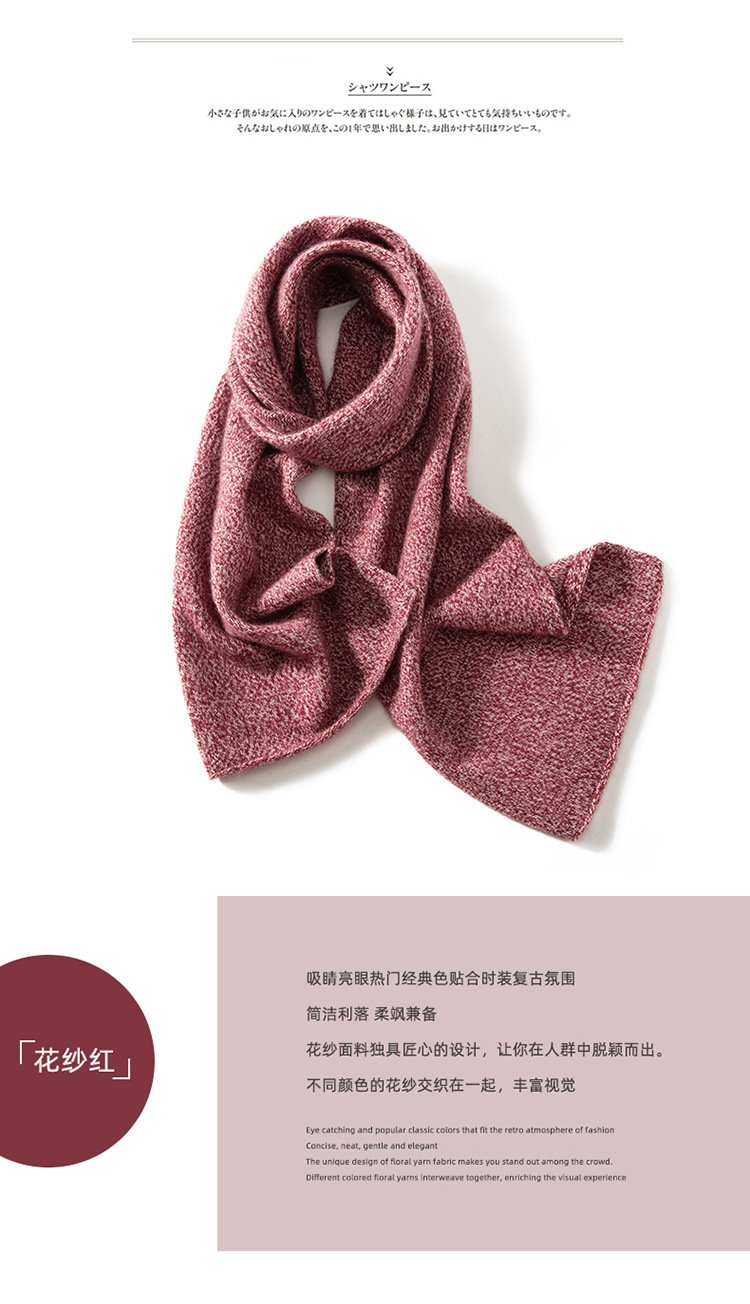 カシミヤマフラー男さんと同じ毛糸ニットで保温マフラーの純色を厚くした2024冬の新モデル