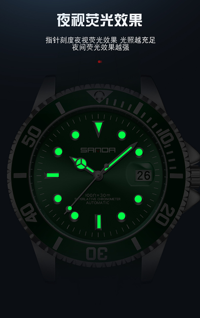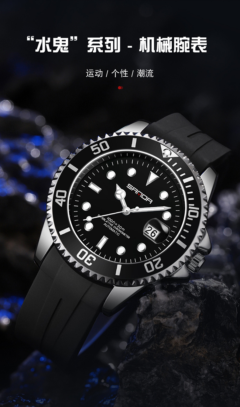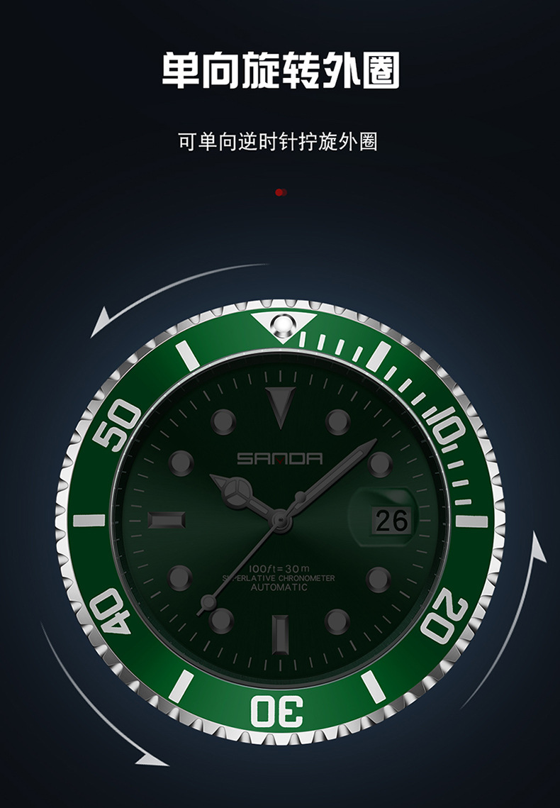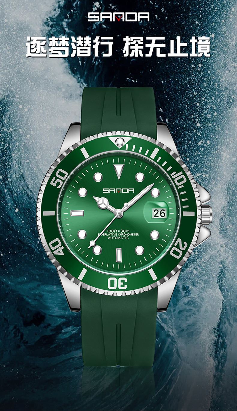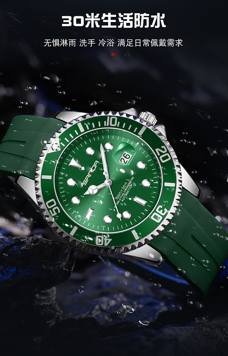 2024新全自動機械時計シリカゲル緑水鬼運動ファッション流行生放送爆金潜水メーカー卸売り