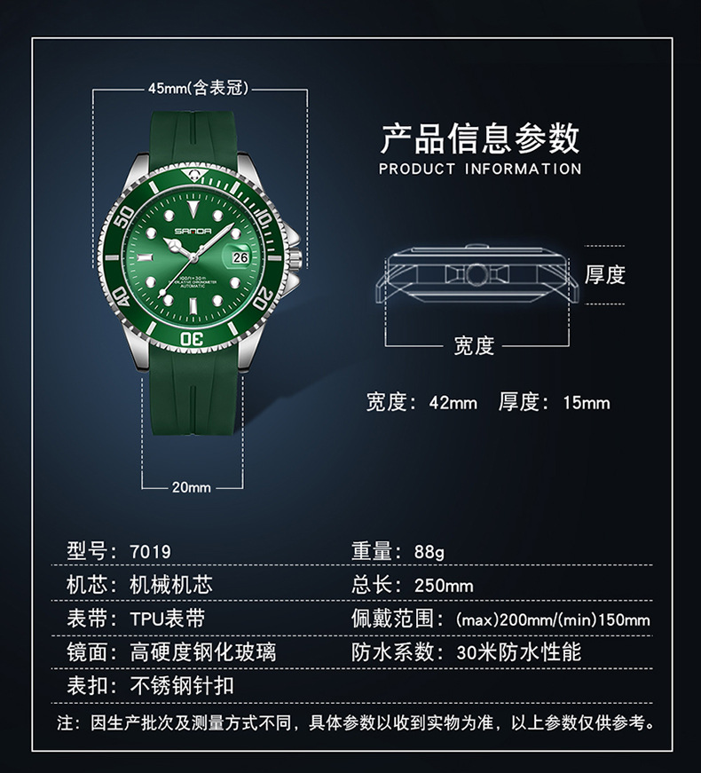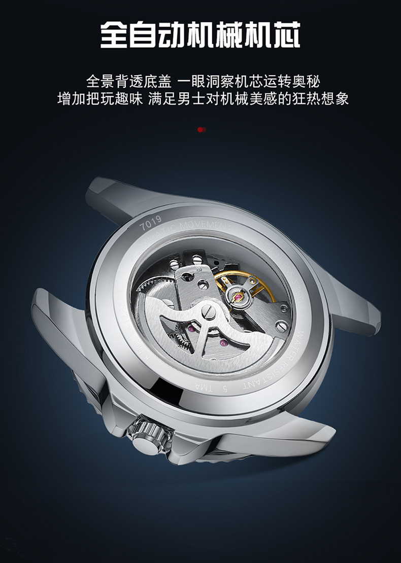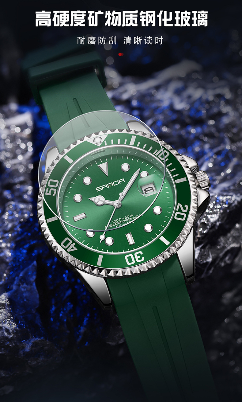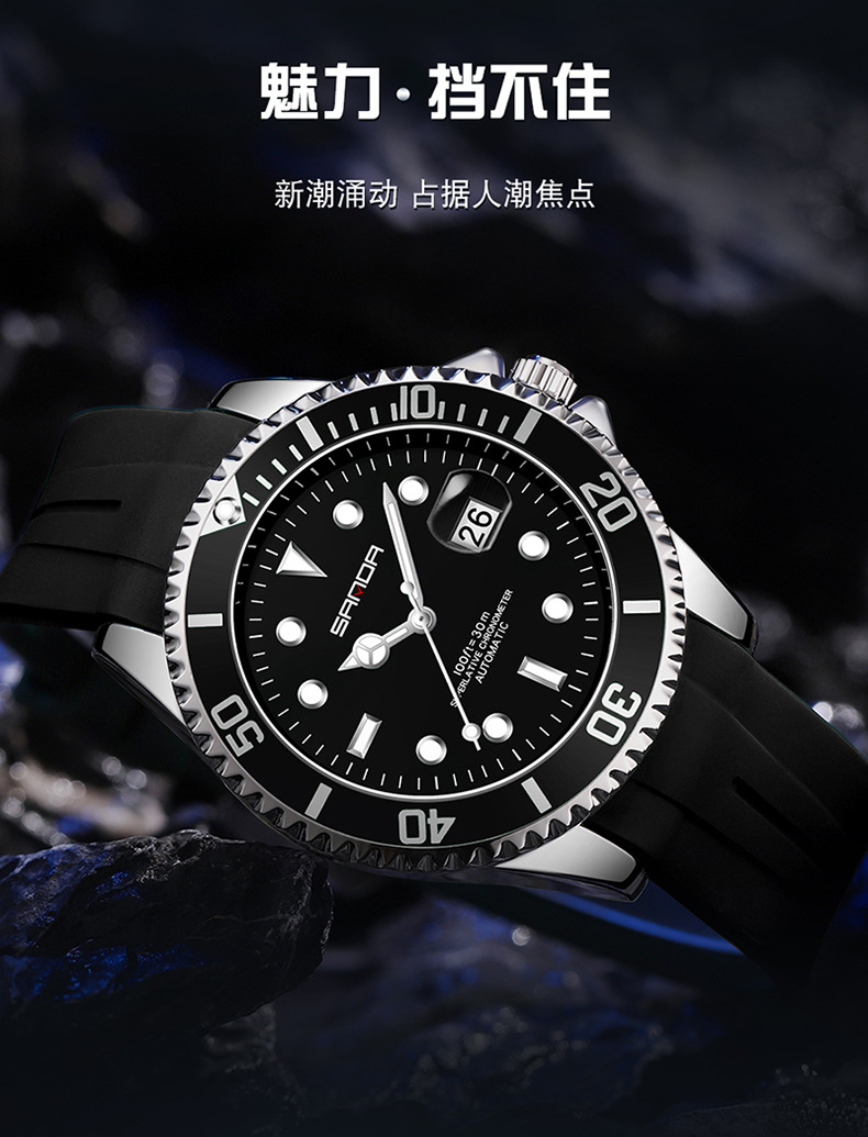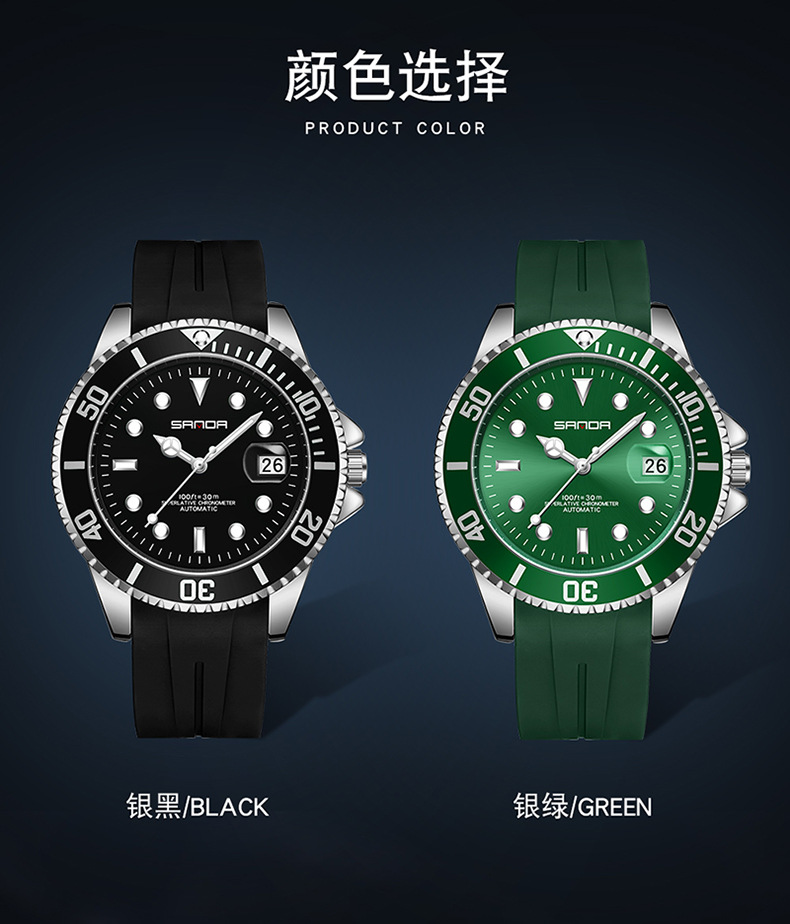 2024新全自動機械時計シリカゲル緑水鬼運動ファッション流行生放送爆金潜水メーカー卸売り