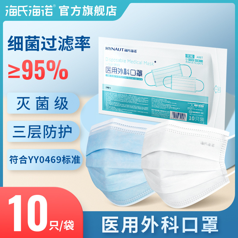 海氏海诺一次性医用外科口罩无菌三层防护熔喷布透气防尘医用级