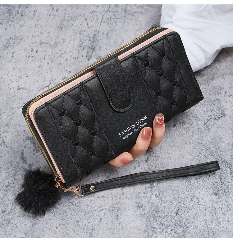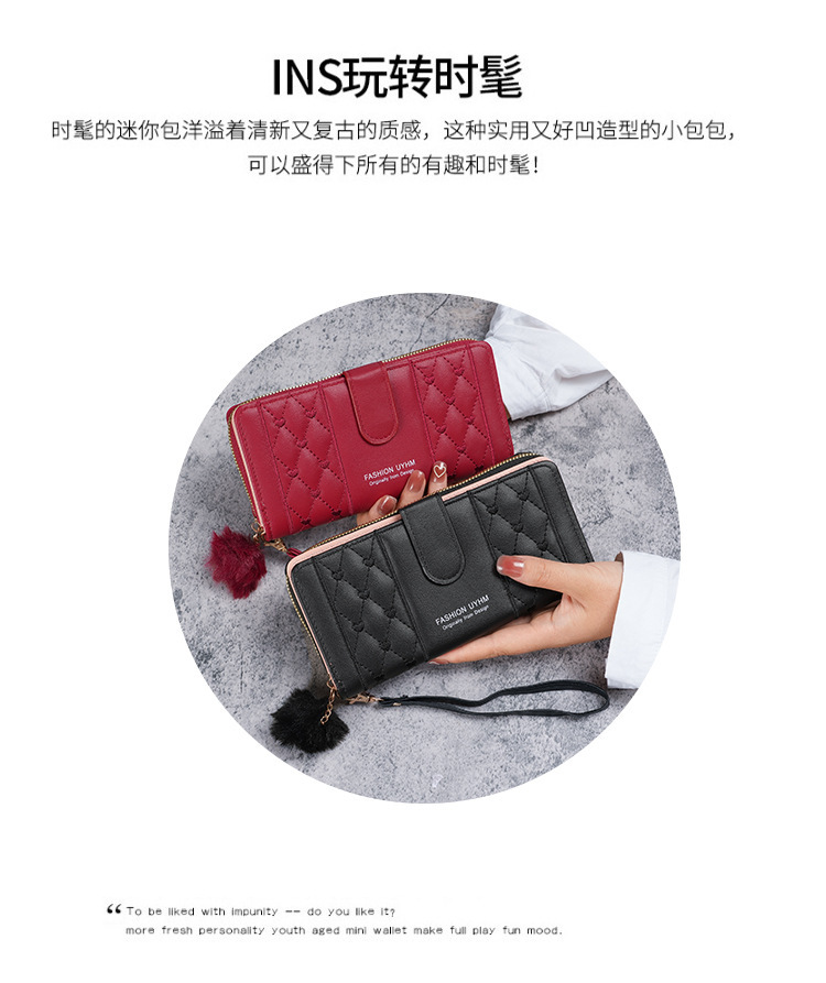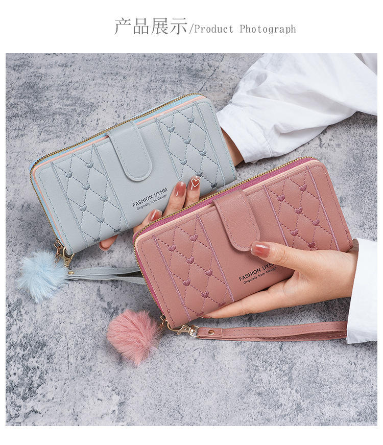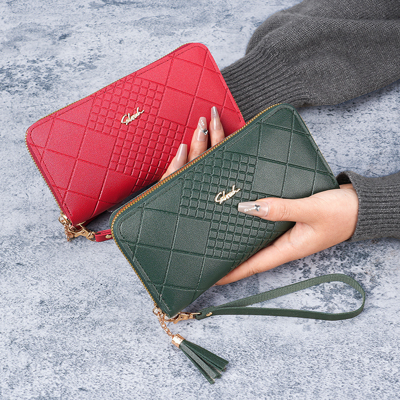 韓国版の女性の長財布ハンドヘルド携帯電話バッグ財布シンプルな財布女性のロングタッセルジッパークラッチバッグ