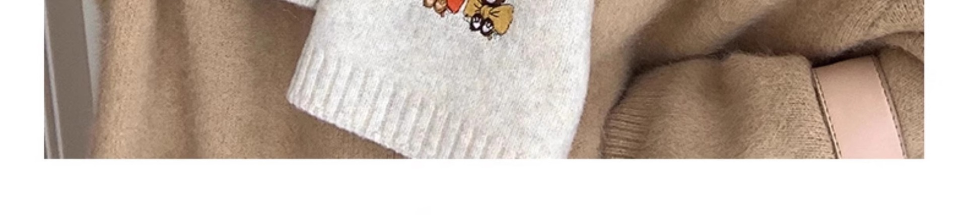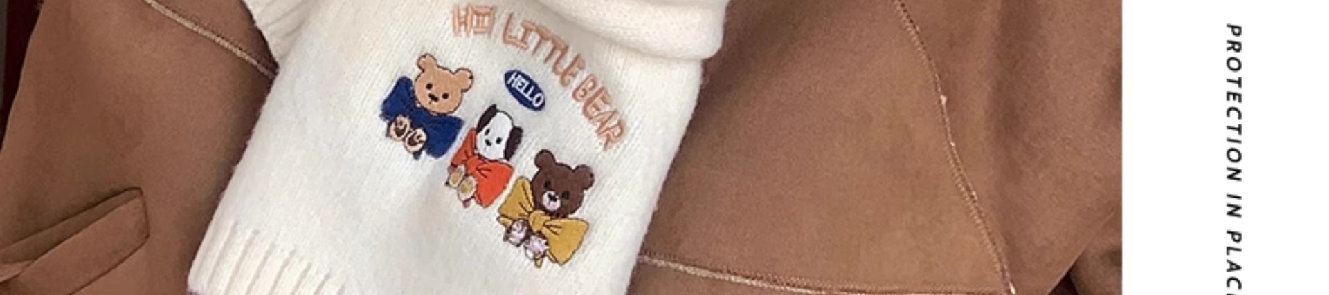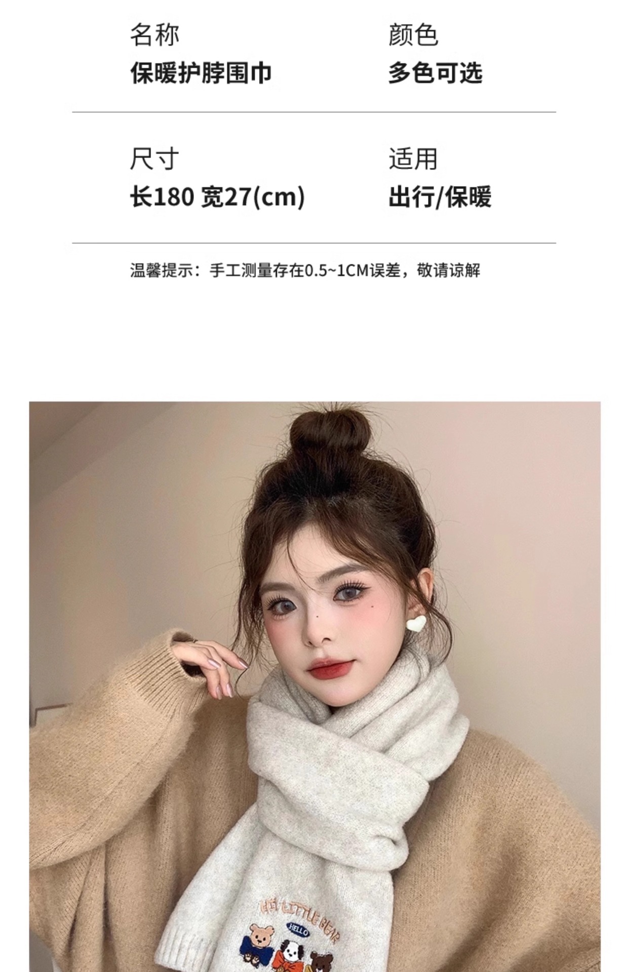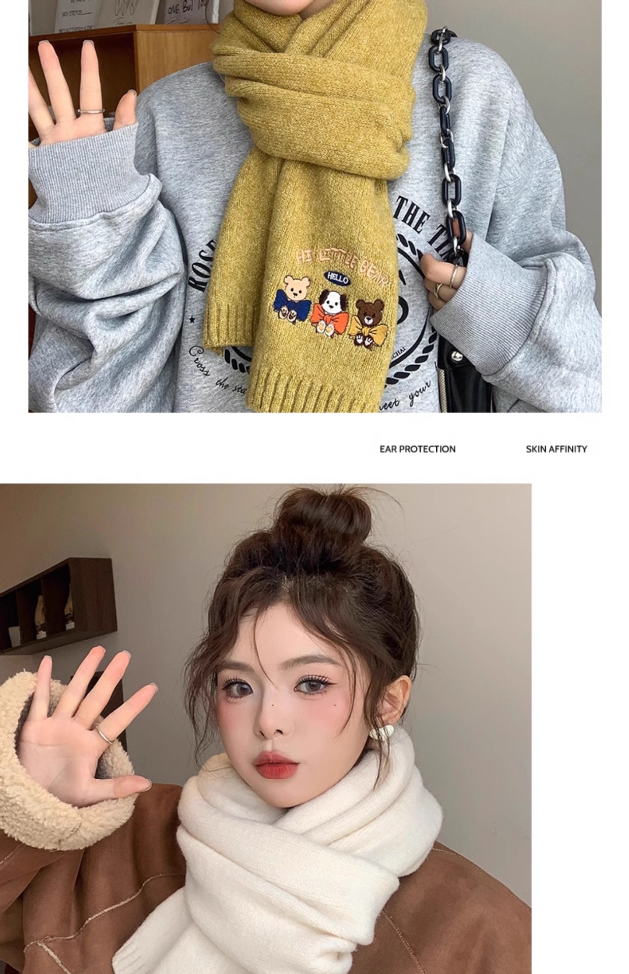 ドーパミンかわいい熊刺繍ニットマフラー女性冬高級感保温防寒百合学生毛糸マフラー