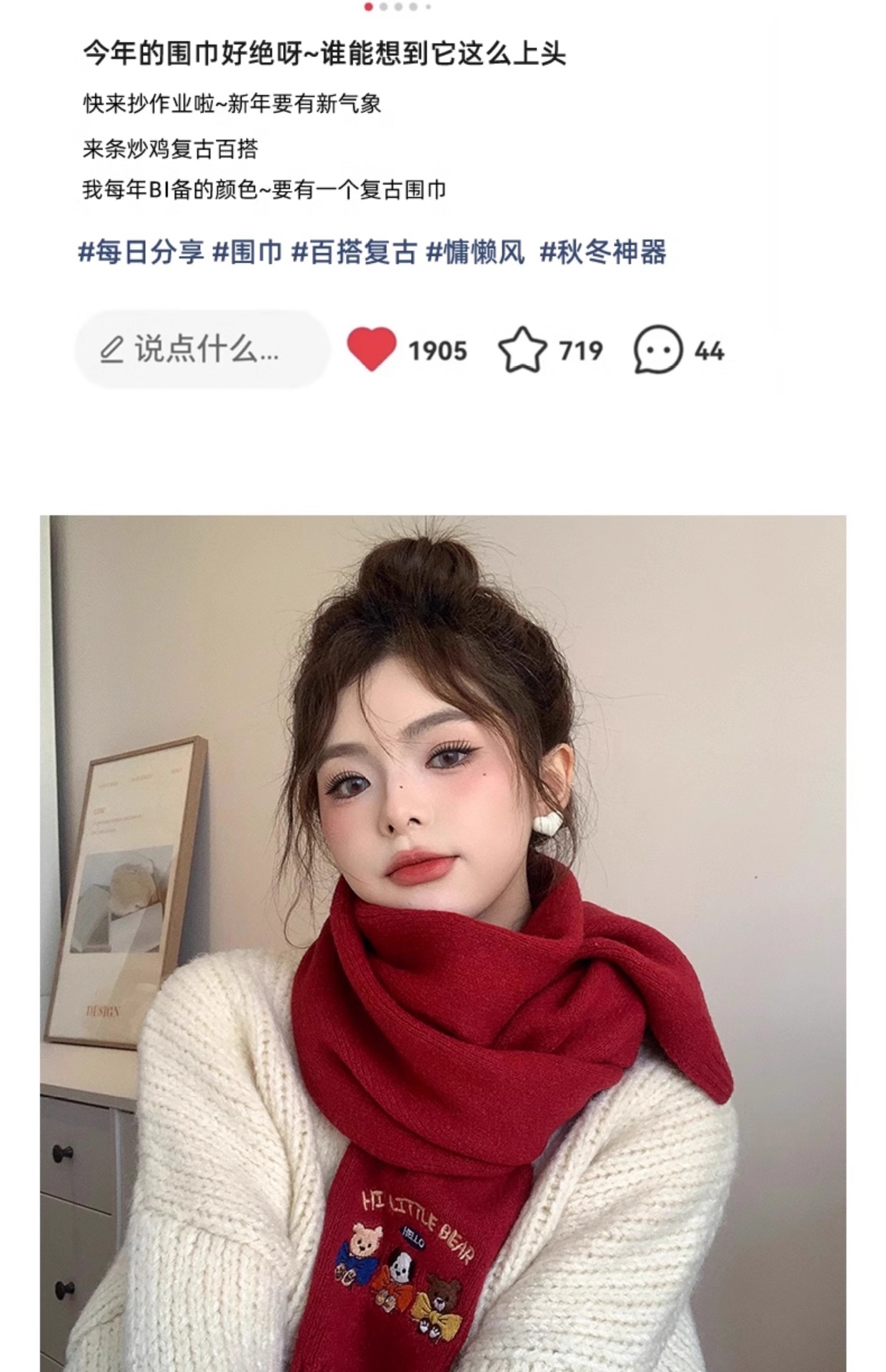 冬保温マフラーレディースクリスマス雰囲気感新年プレゼント赤高级感子供用ニットベアー親子囲い
