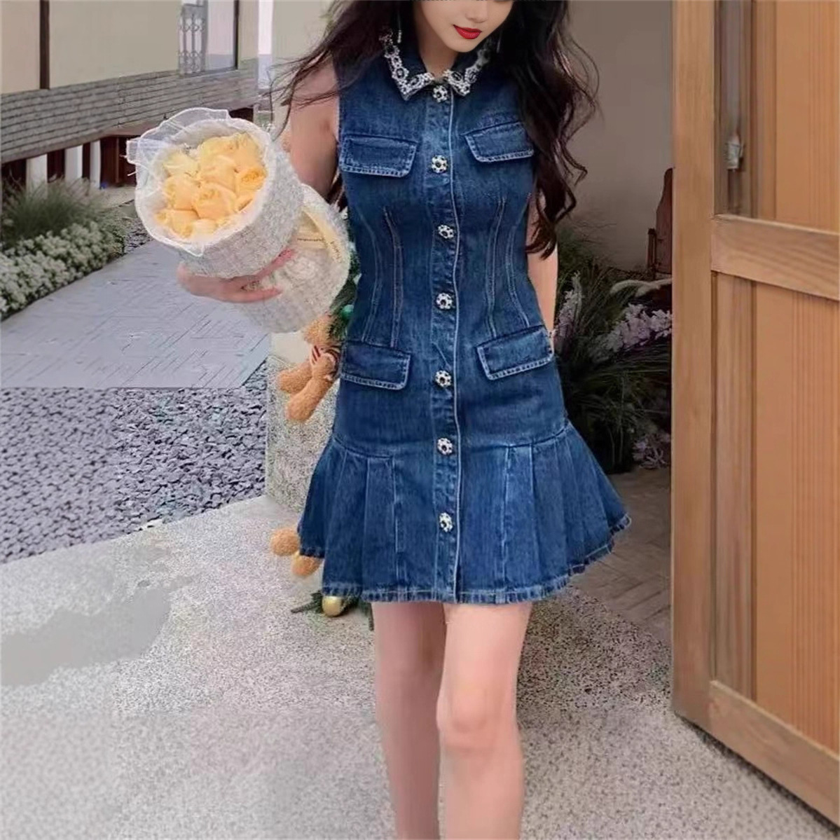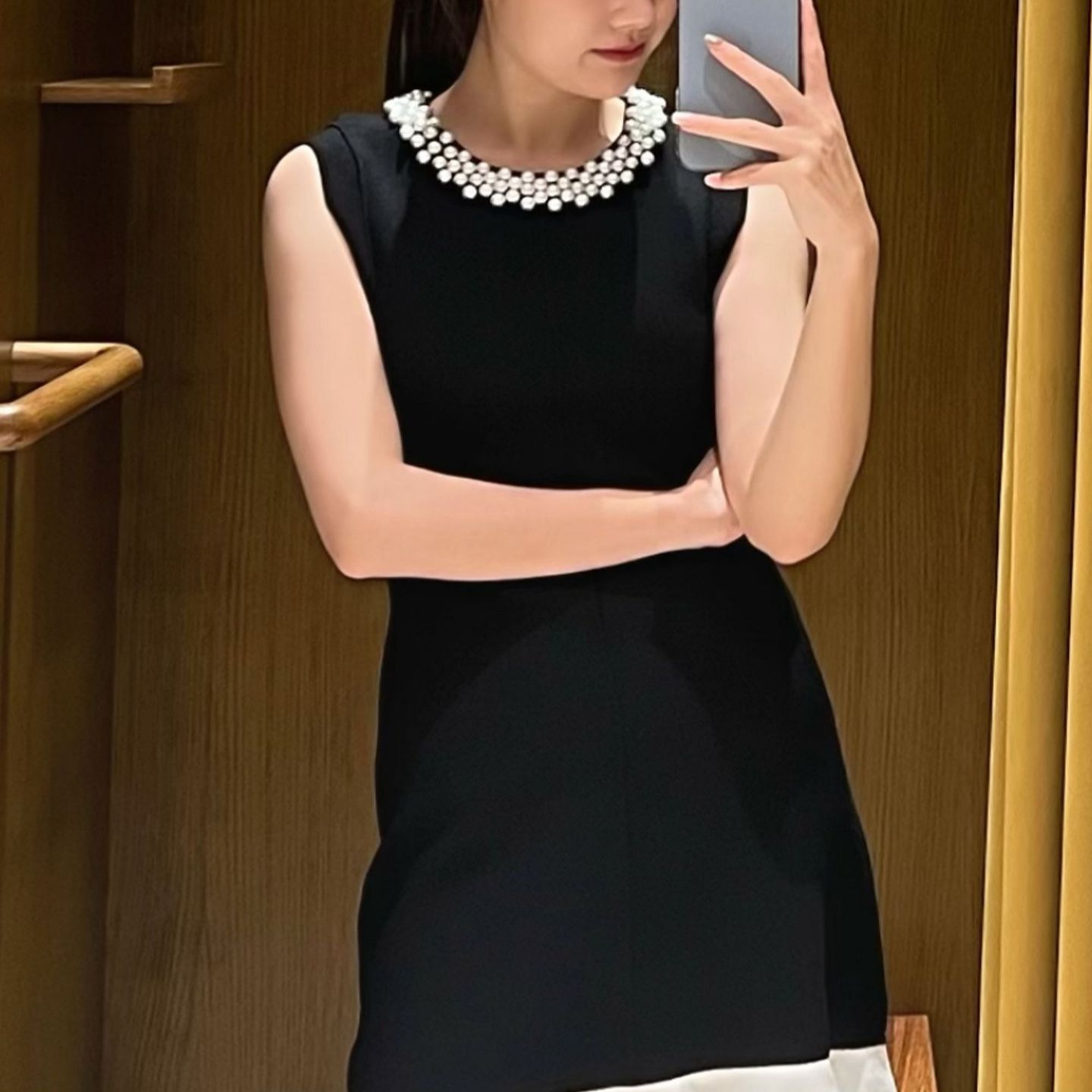 法式优雅24早秋都市气质镶钻领口袋礼服裙无袖连衣裙