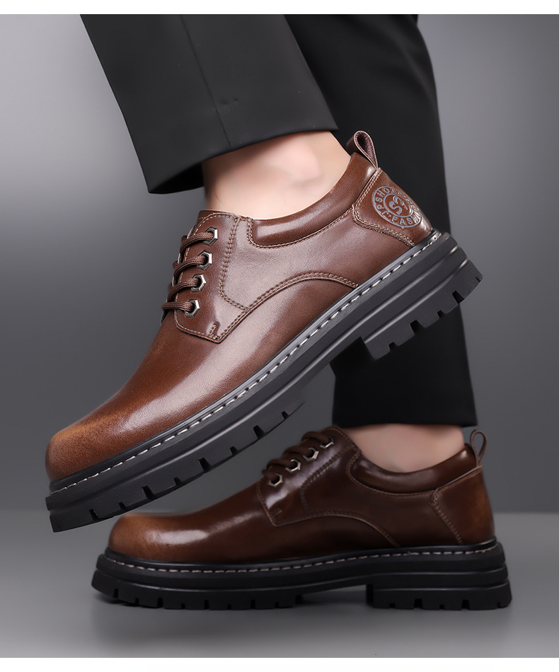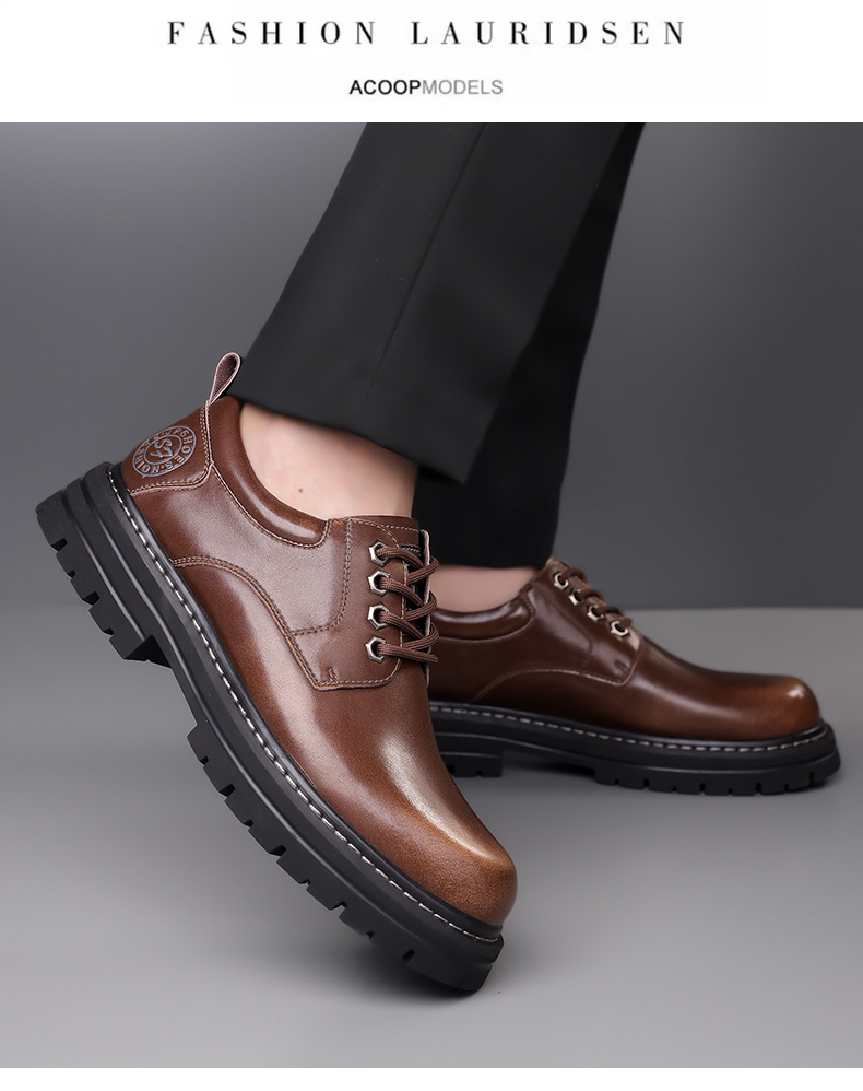 男性靴2025新型春のファッションはレトロな英倫の皮の防水の男性のカジュアルな足の楽福の靴を合わせます。