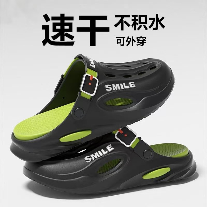 踩屎感洞洞鞋男夏季开车钓鱼外穿厚底防滑户外耐磨沙滩包头凉鞋男