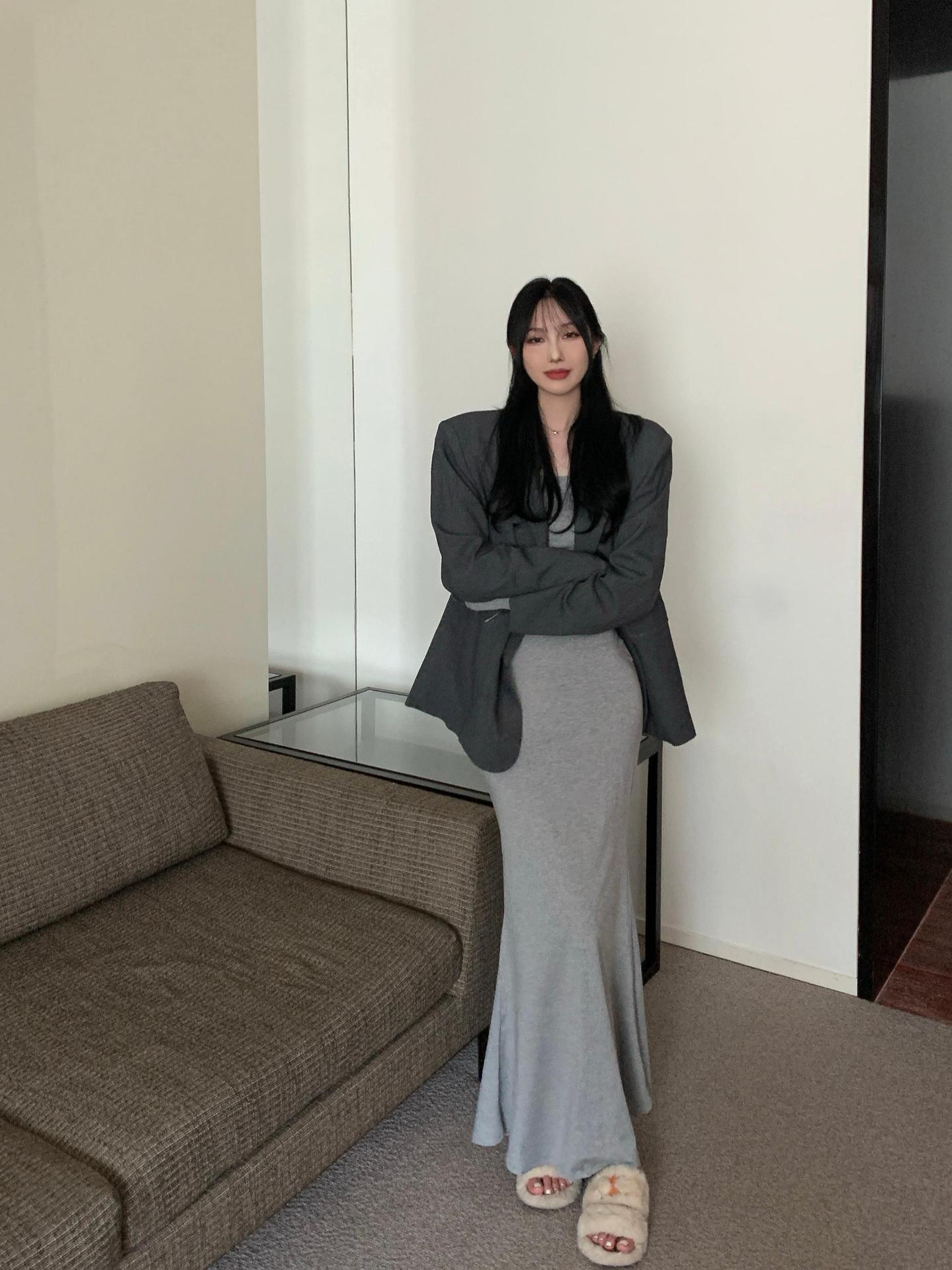 鱼尾连衣裙女春秋季配大衣内搭修身长款超显身材打底紧身包臀裙子