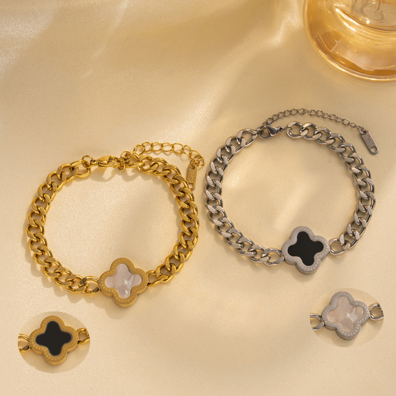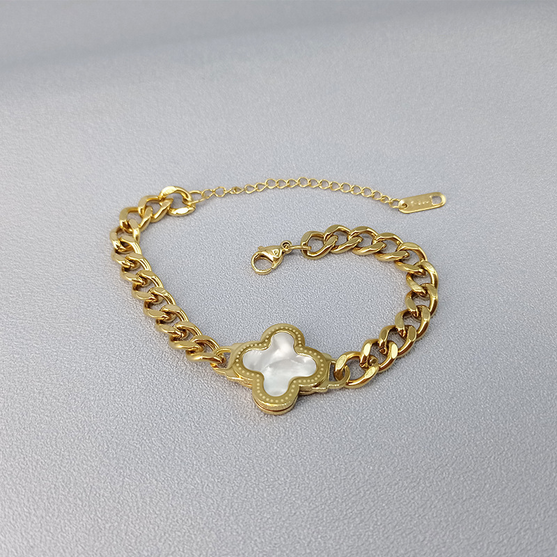 欧米の古典的な四つ葉の貝殻のブレスレットの女性ファッションチタン鋼の潮流のブレスレットの個性の太いチェーンのヒップホップのアクセサリー
