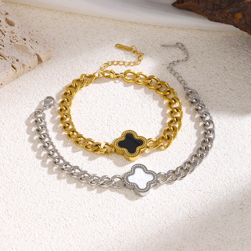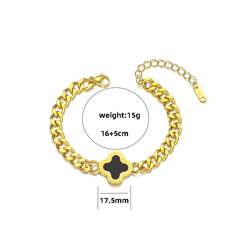 欧美经典四叶草贝壳手链女时尚钛钢潮流手镯个性粗链条嘻哈配饰品