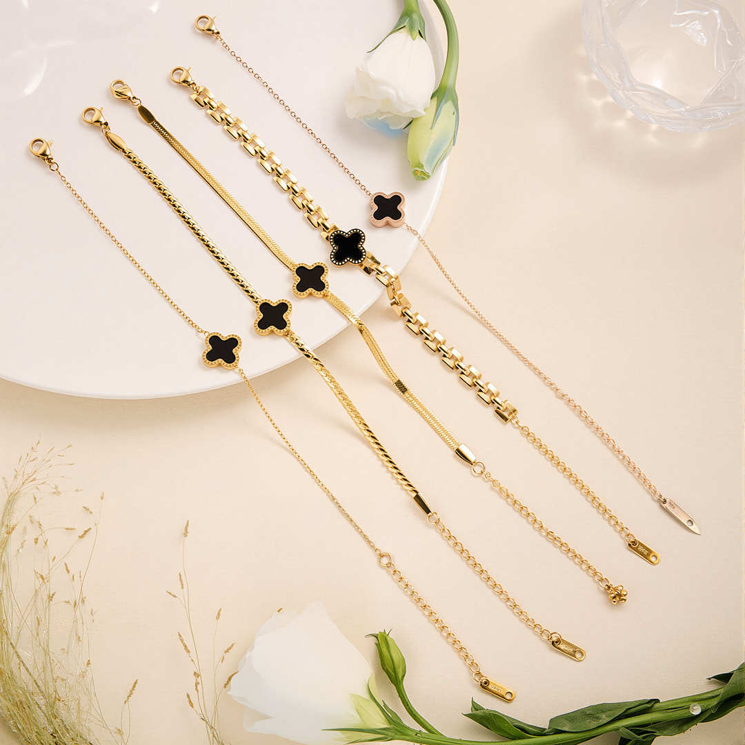 百合ins金色ファッションアクセサリーの手環は贅沢でシンプルで、新しい色が落ちないチタン鋼のブレスレットの女性四葉草が国境を越えている