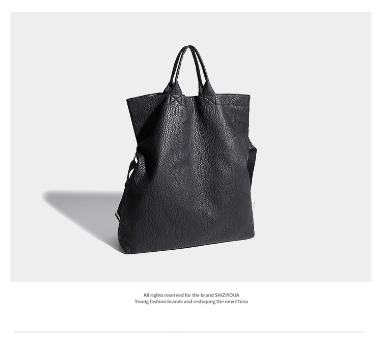 是自由啊 牛皮黑武士托特包休闲大容量手提通勤单肩斜挎真皮大包