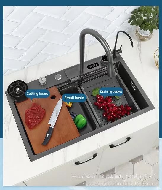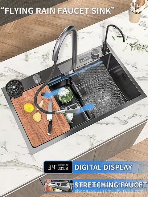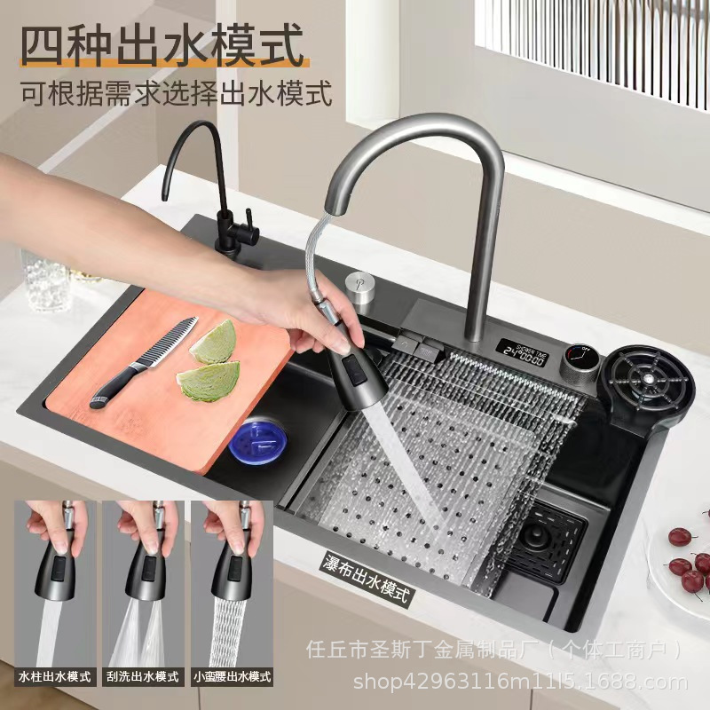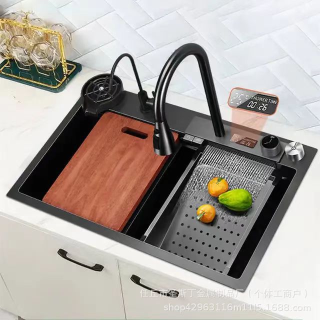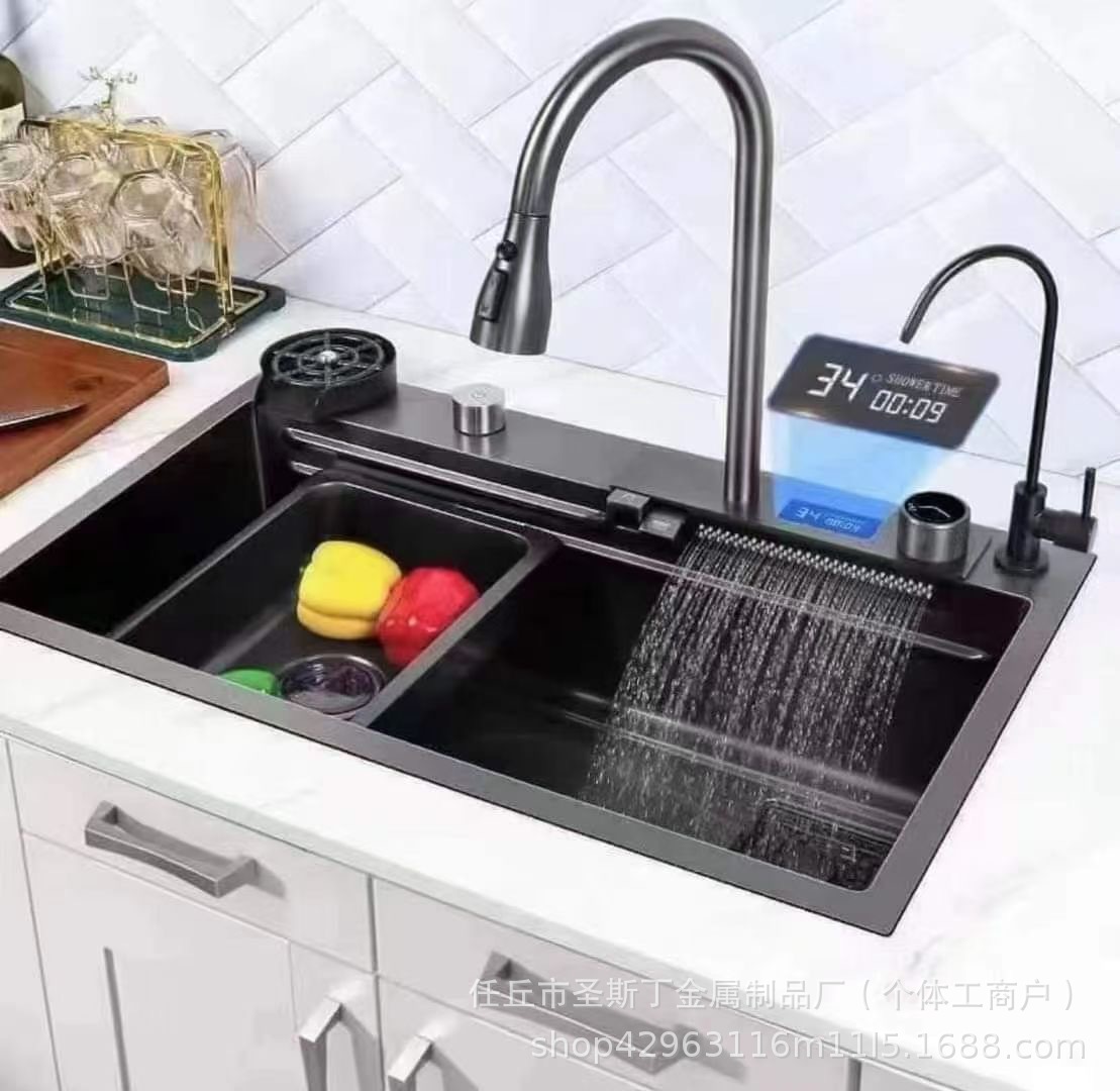 越境デジタル表示飛雨滝水槽ナノ304ハニカムステンレス大単槽厨房洗濯槽