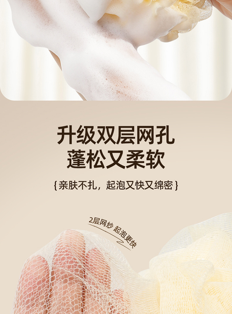 Yuesijia 卸売ストレッチバスボール、背中ストリップ、ツーインワンバスタオル、高価値バスタオル、無痛泥
