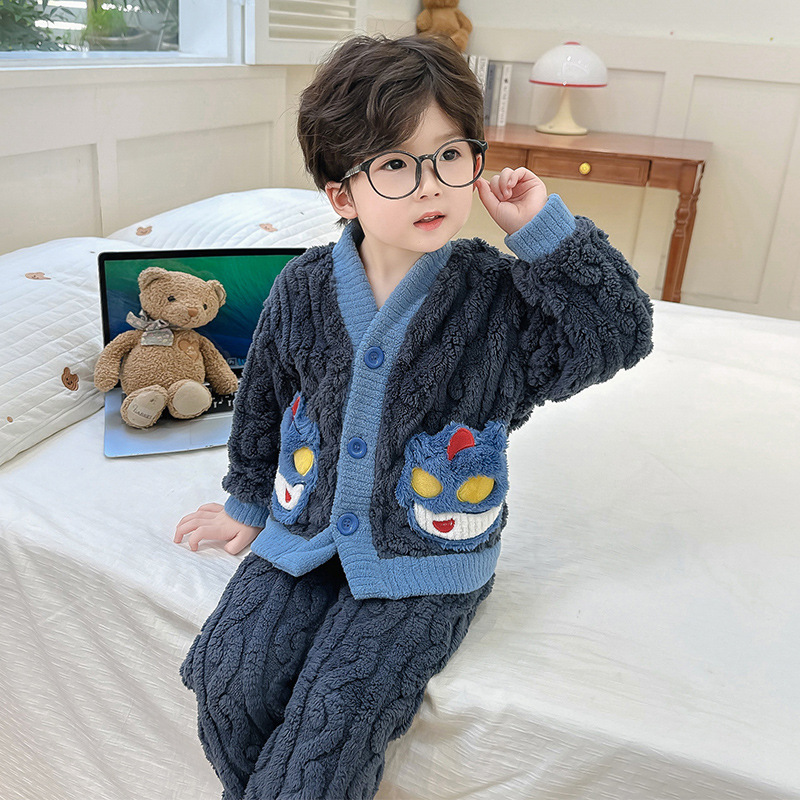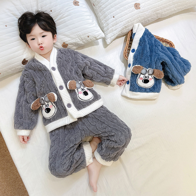 男児パジャマ秋冬金2024新型児童ベルベットセット少年サンゴベルベット赤ちゃんフランネル家庭服