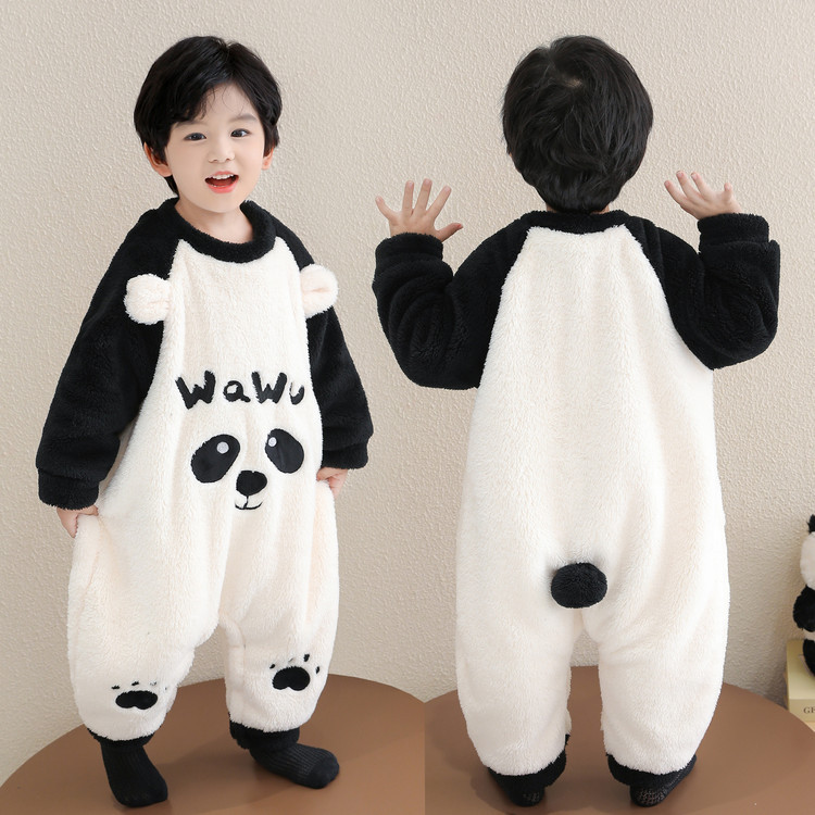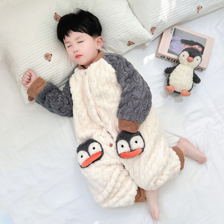 儿童连体睡衣秋冬季加绒加厚婴儿宝宝睡袋男童珊瑚绒防踢被分腿款