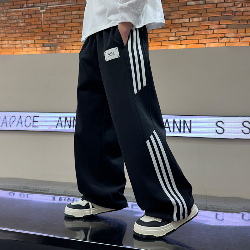 男児ズボン春秋モデル2025新型中大童男の子春格好いいレジャースポーツストレートワイドパンツ潮