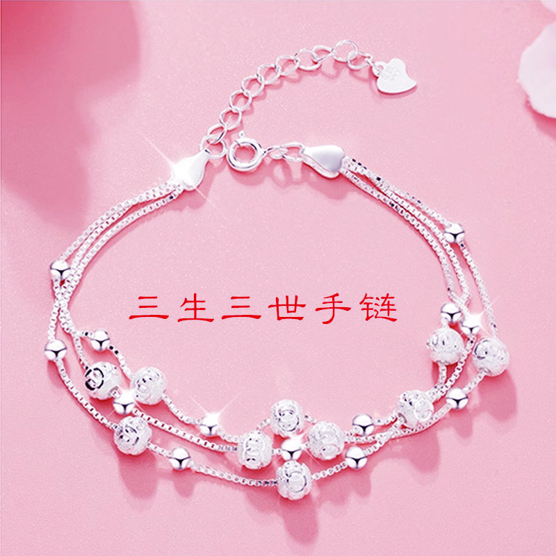 本場の新型三生三世ブレスレット999純銀色の中実輸送誕生日バレンタインデーブレスレット彼女