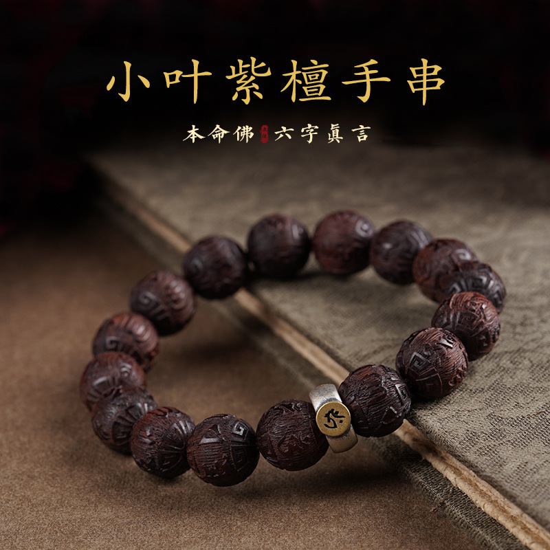 本格的なインドの小葉紫檀の手串男本命年のブレスレット