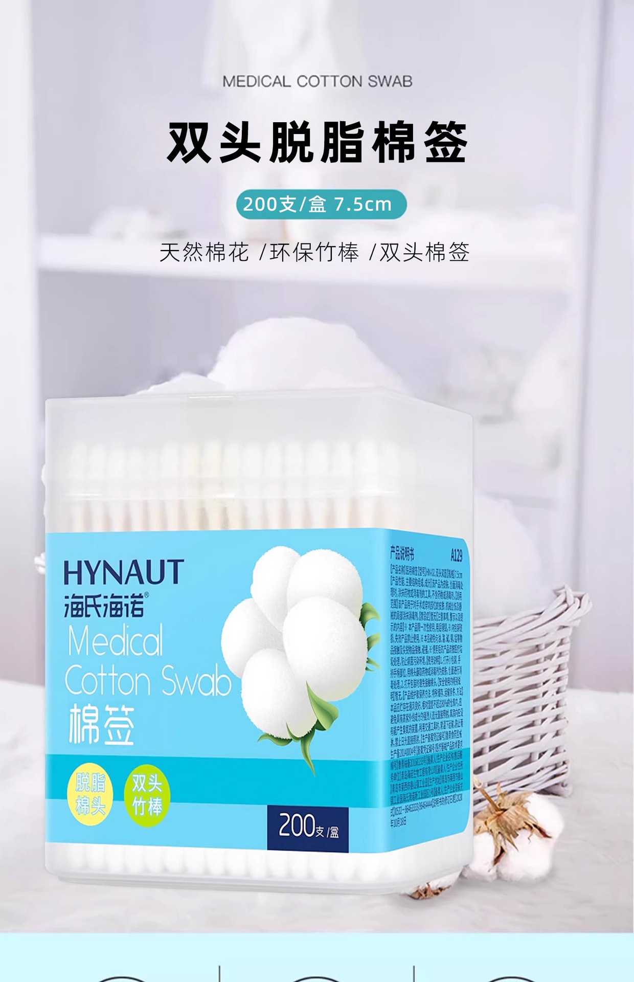 海氏海诺医用棉签清洁化妆棉棒婴儿用一次性尖圆头多规格医用棉签