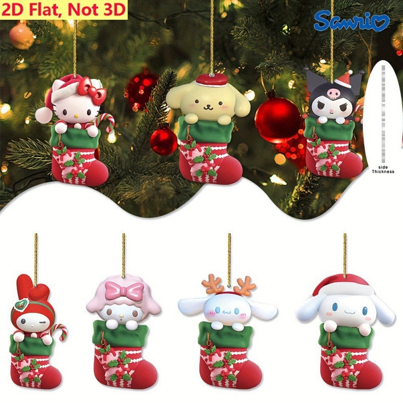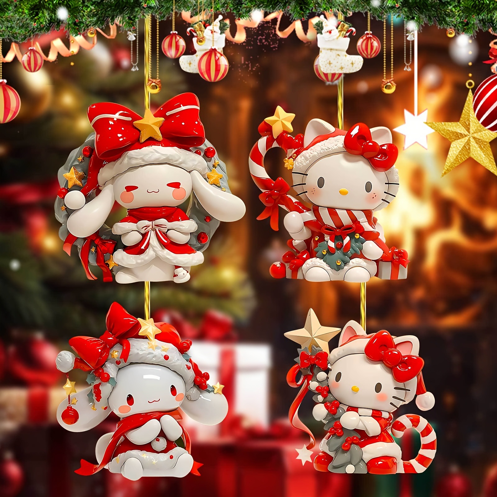 4个三丽鸥华丽的亚克力圣诞树装饰品,钥匙链和汽车后视镜挂件,