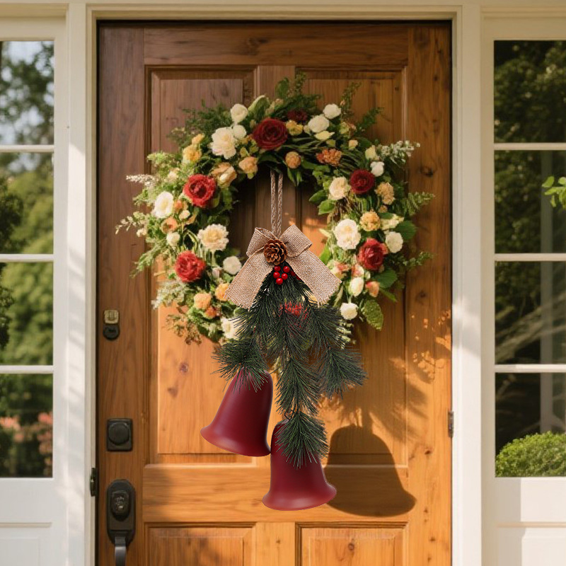 亚马逊新品圣诞铃铛挂件 diy圣诞节室内门窗墙壁装饰松针铃铛挂饰