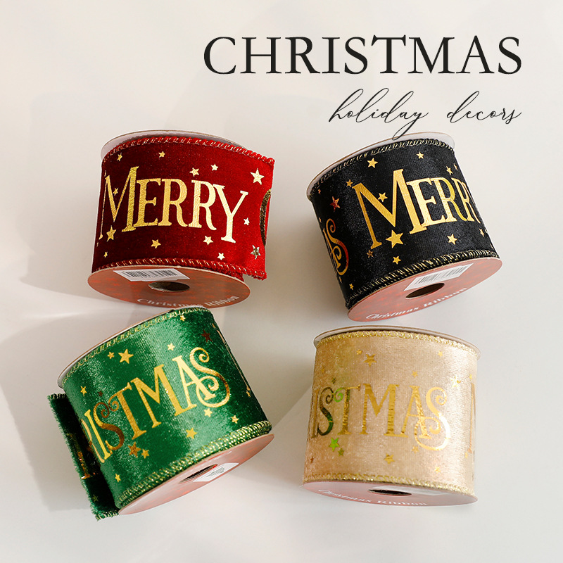 アマゾンで人気の金箔織りリボン クリスマスデコレーション クリスマスギフト用リボン プリントサテン