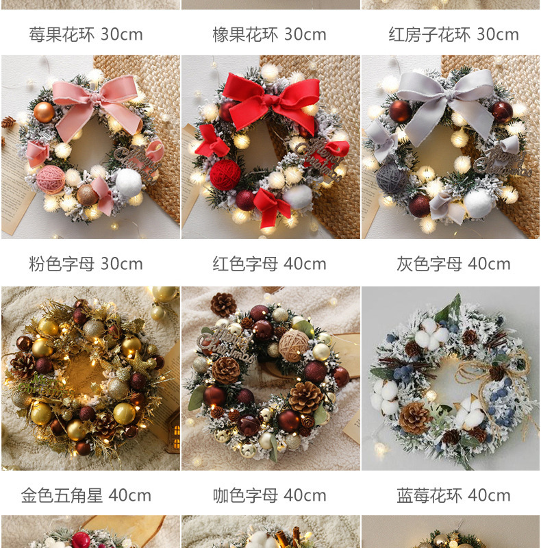 韓国版人気クリスマス花輪30cm40cm藤条花輪門掛デパートホテルショーウインドークリスマス装飾品