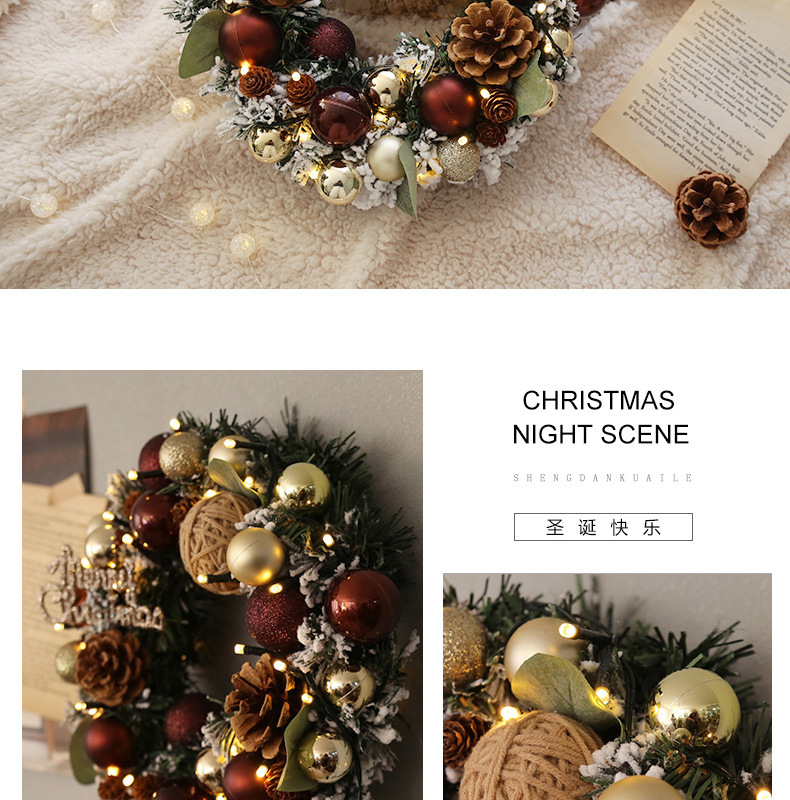 亚马逊新品圣诞装饰品花环花圈橱窗布置门挂藤条场地布置圣诞花环
