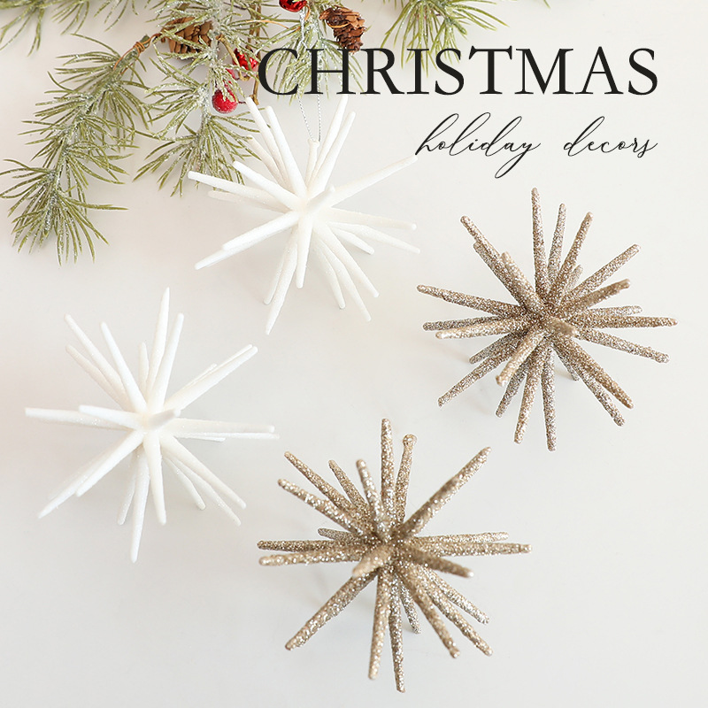 聖遠の人気クリスマスデコレーション吊り飾り、クリスマスツリー飾り、シャンパンカラー、ホワイト、透明、爆発星、卸売