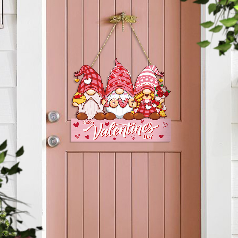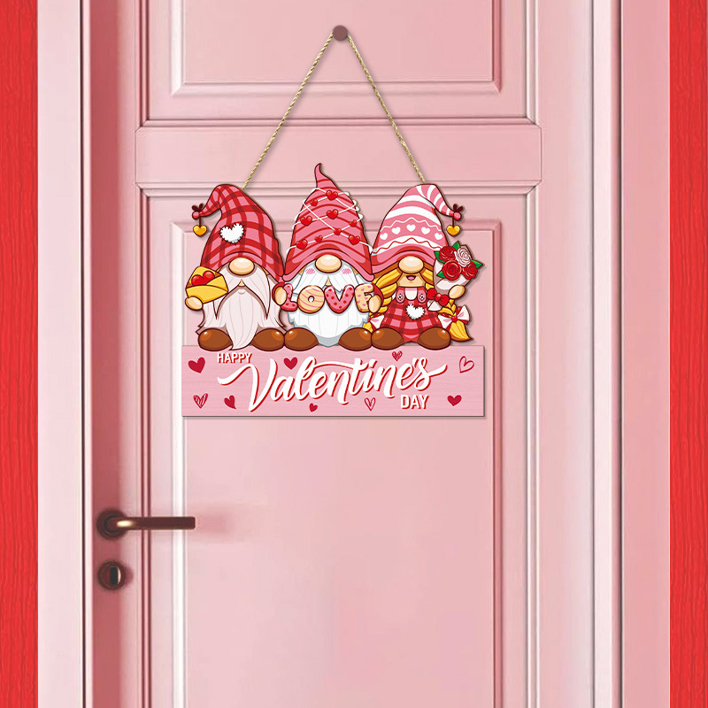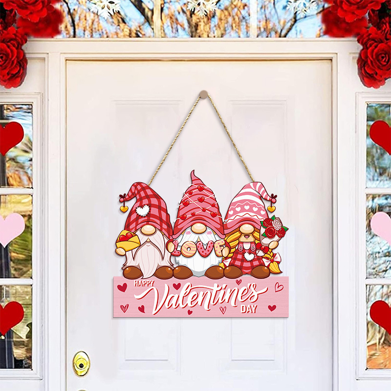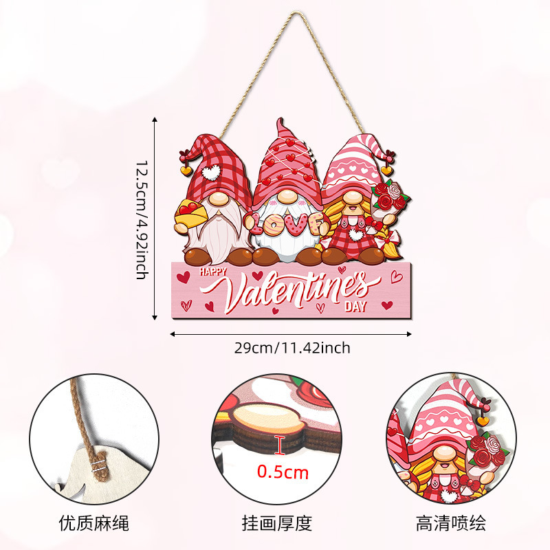国境を越えた漫画風の新しいバレンタインデーパーティーのドア飾り、ノーム、小人、木製壁飾り、吊り下げ飾り