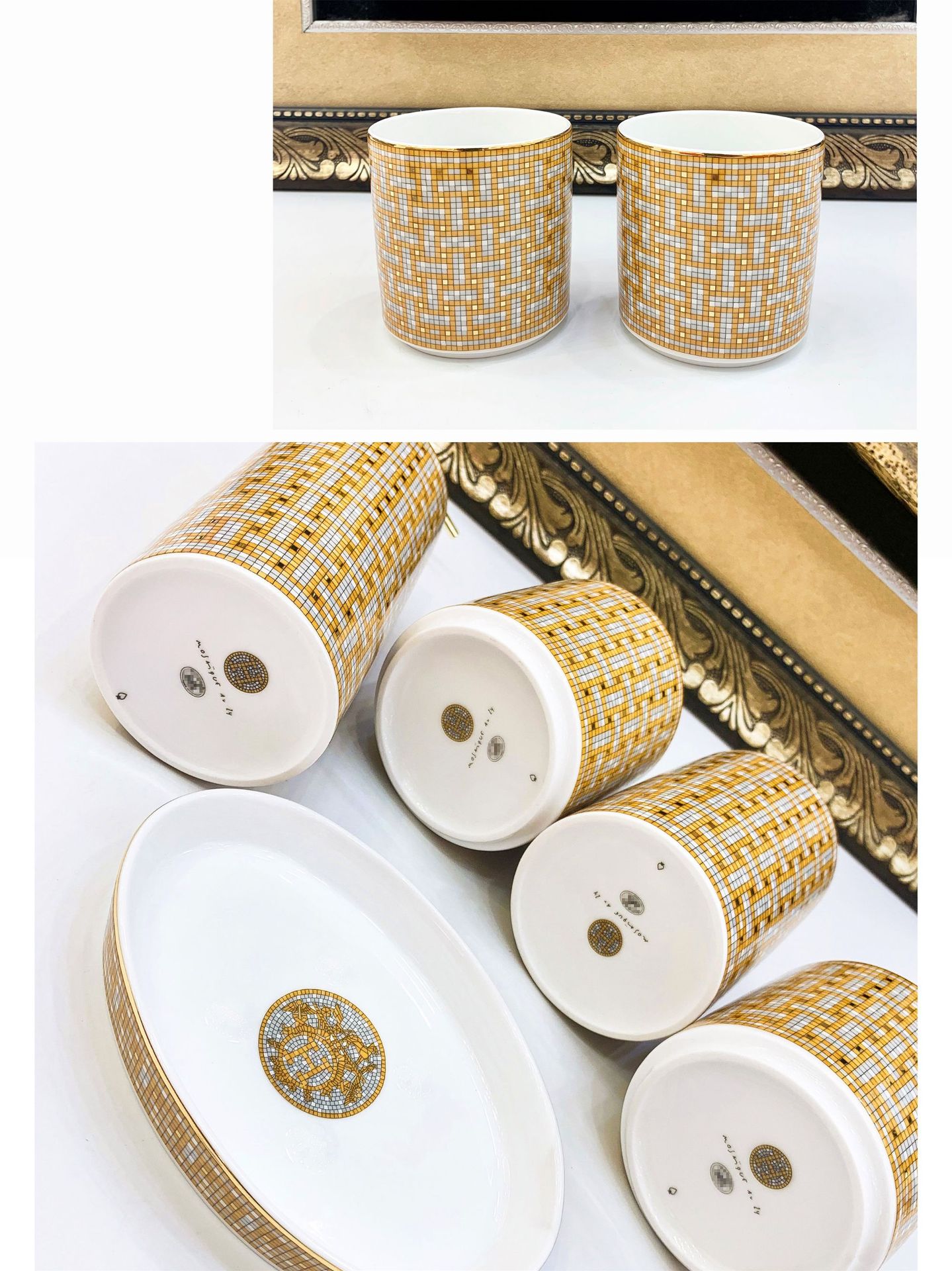 ヨーロッパ式のシンプルなブランドのマグカップの牛乳カップの朝食カップのモザイクの陶磁器の高級な精巧な骨の磁器のh家の礼箱