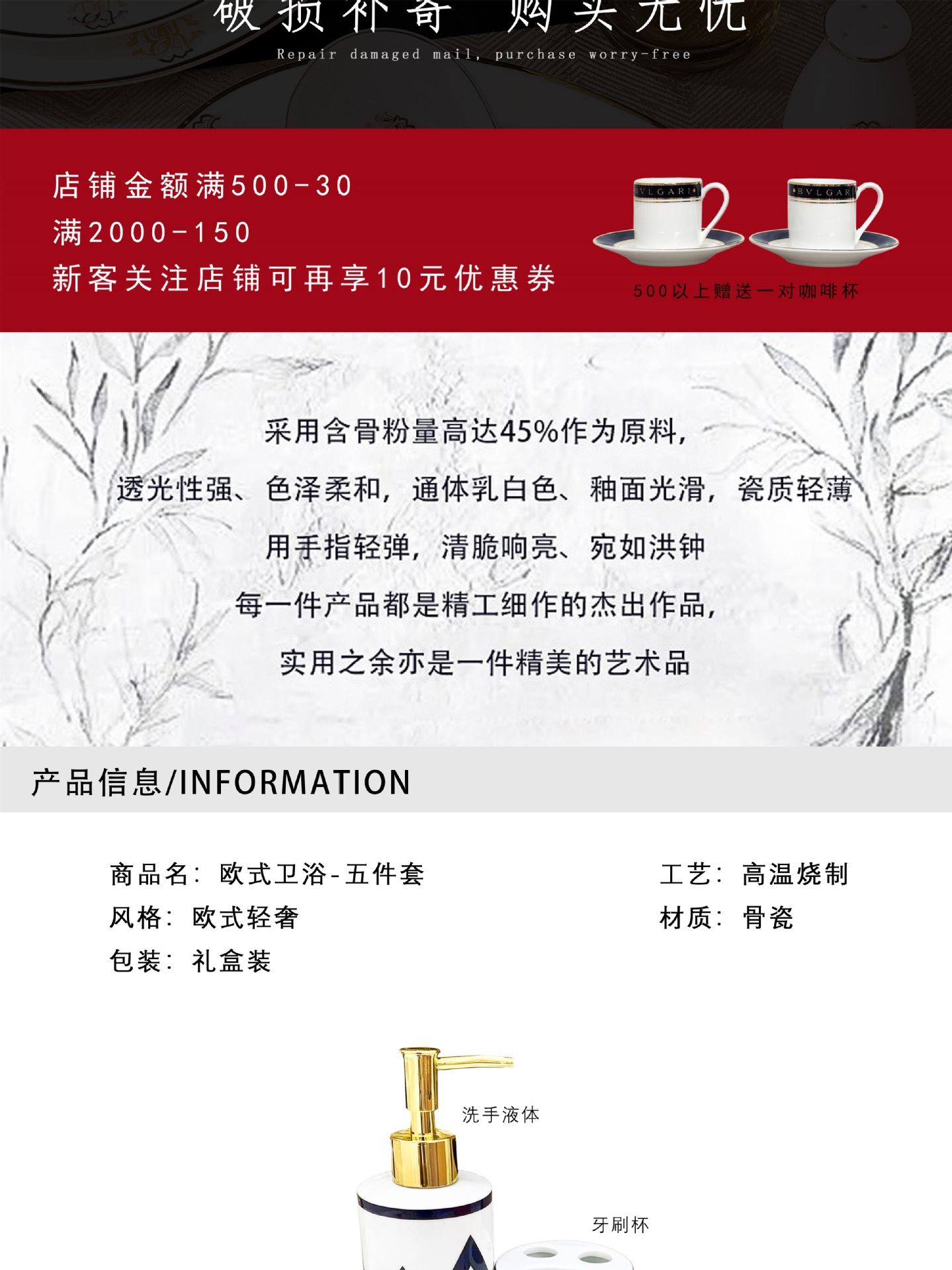 愛馬家ヨーロッパ式陶磁器風呂セット高級ホテル洗面用品洗面収納セット