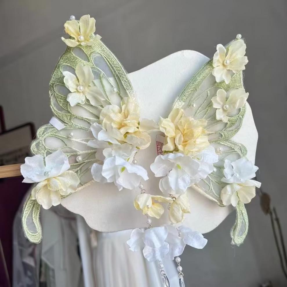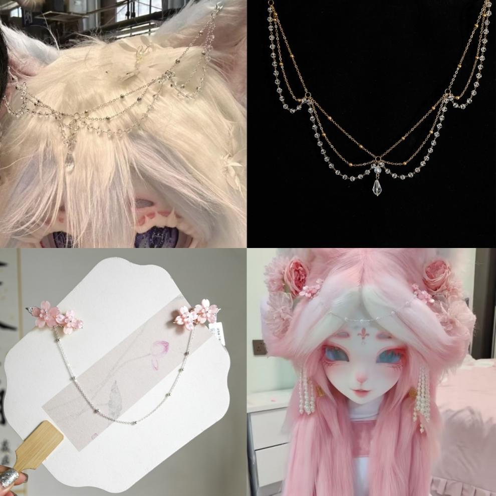 獣頭額飾り、獣毛飾り、チェーンジュエリー、超妖精蝶花、シルクフラワーヘアピン、万能ヘッドドレス