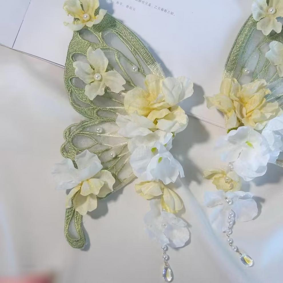 甜美梦幻减龄新娘蝴蝶发夹头饰超仙灵动蕾丝网纱边夹森系优雅配饰