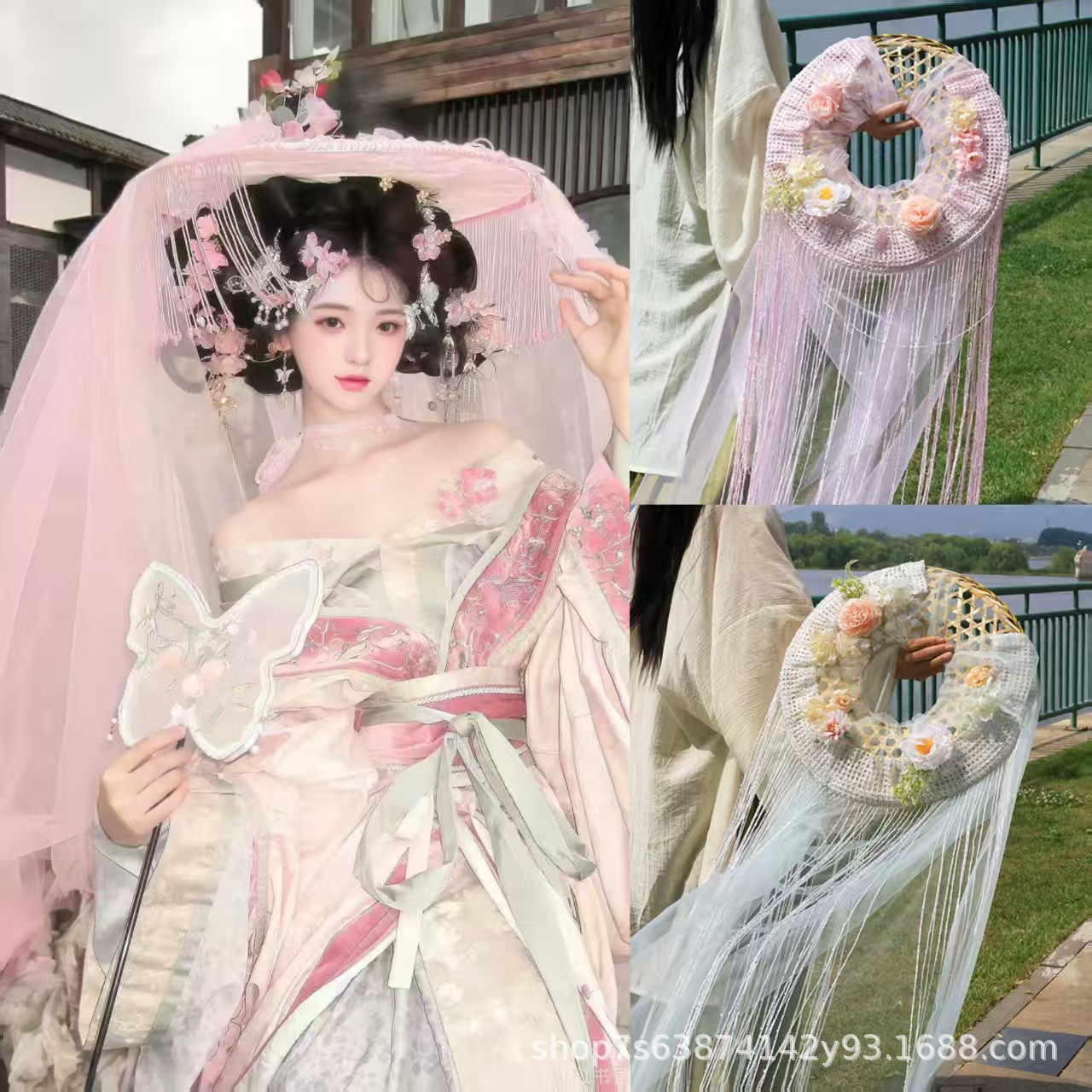 漢服のベールハット、モダンな柳のガーゼハット、日焼け止めフェイスカーテン、写真小道具、古代スタイルのベールハット