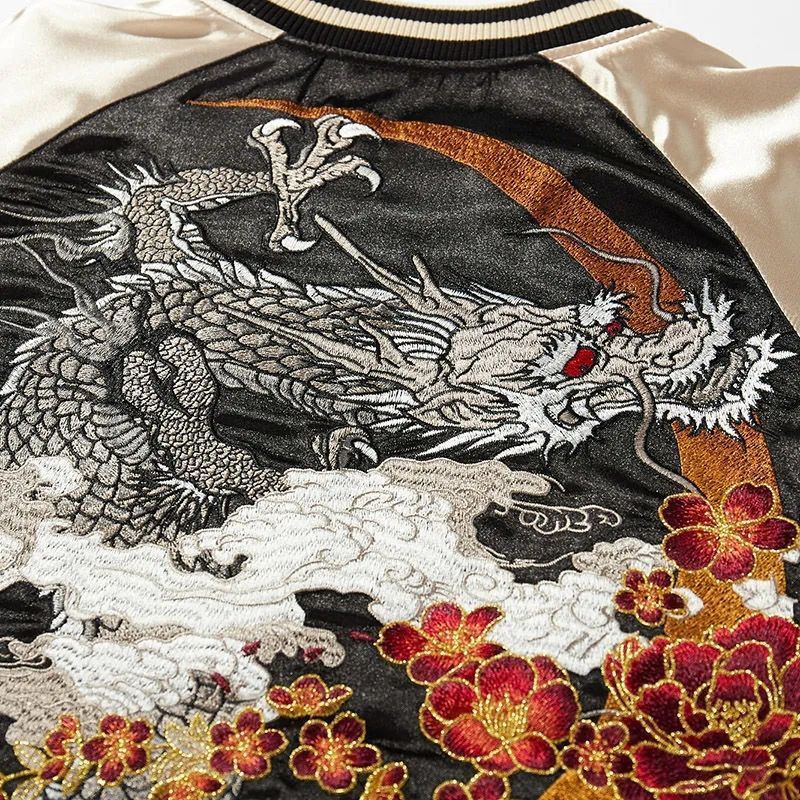 2023龍刺繍野球服コート男女ジャケット国潮重工流行衝突色中国風小衆青代発