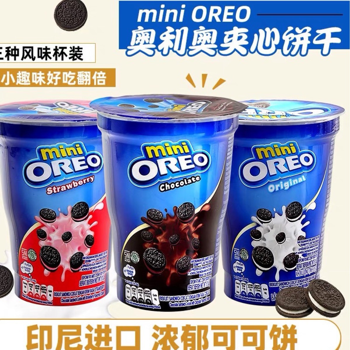 インドネシアOREO MINIオリオいちごチョコレートサンドイッチクッキーミニクッキーカップ61.3g * 24カップ