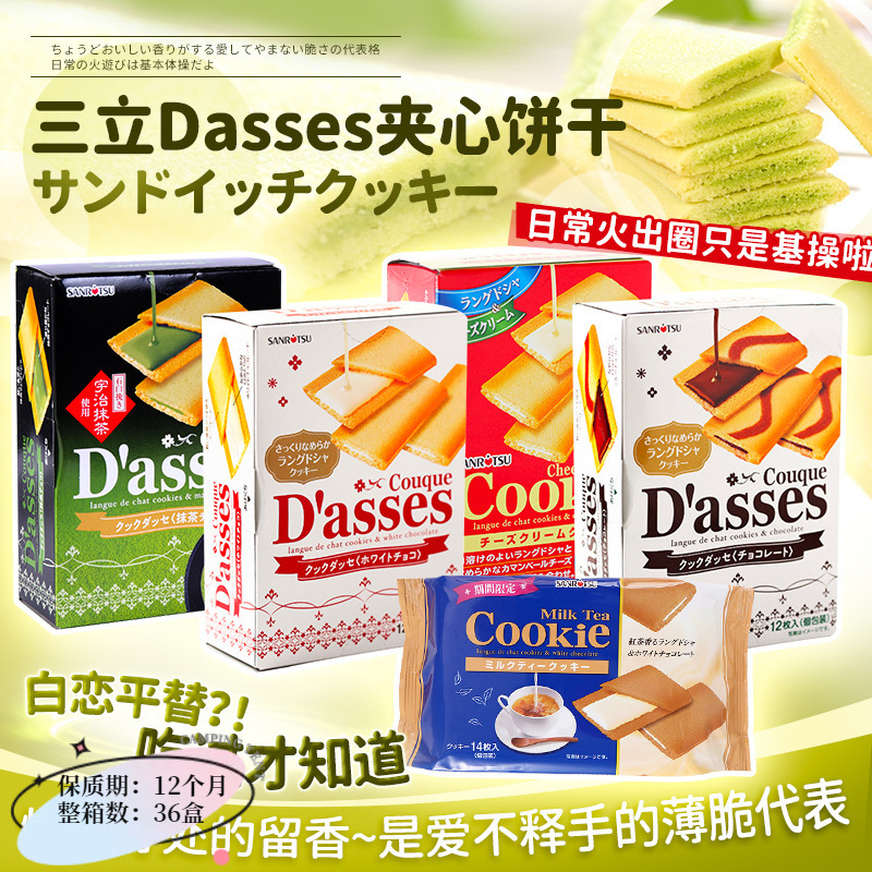 日本进口零食三立夹心饼干抹茶黑巧克力奶酪味曲奇高端伴手礼批发