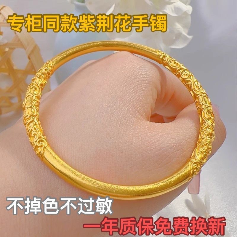 本場【色包退】新古法ベトナム純沙金紫荊花巻紋ブレスレット不色花